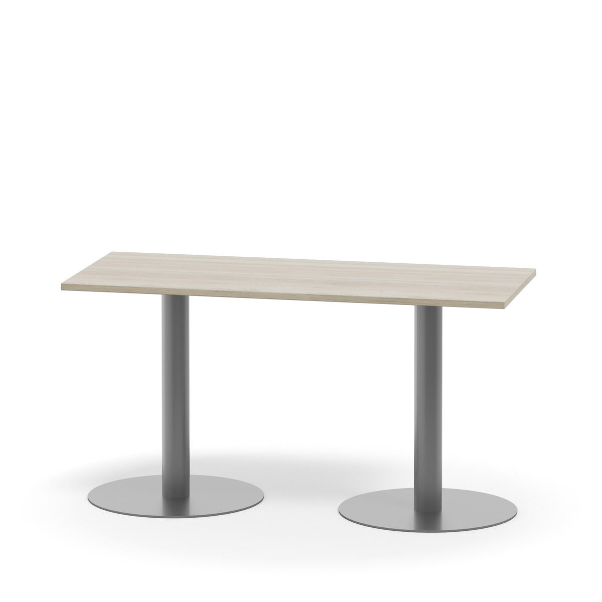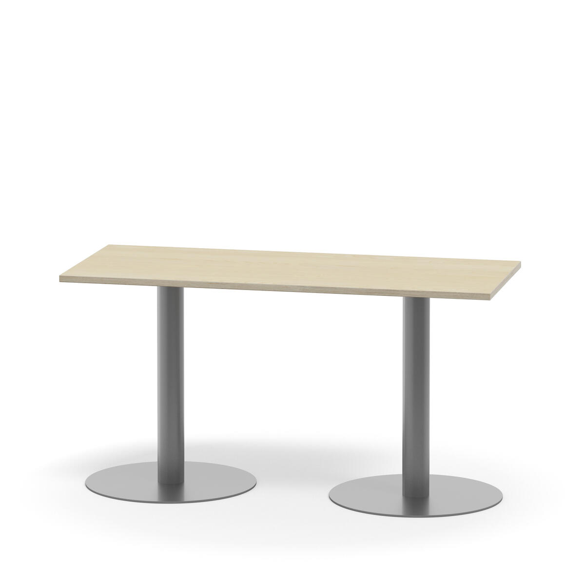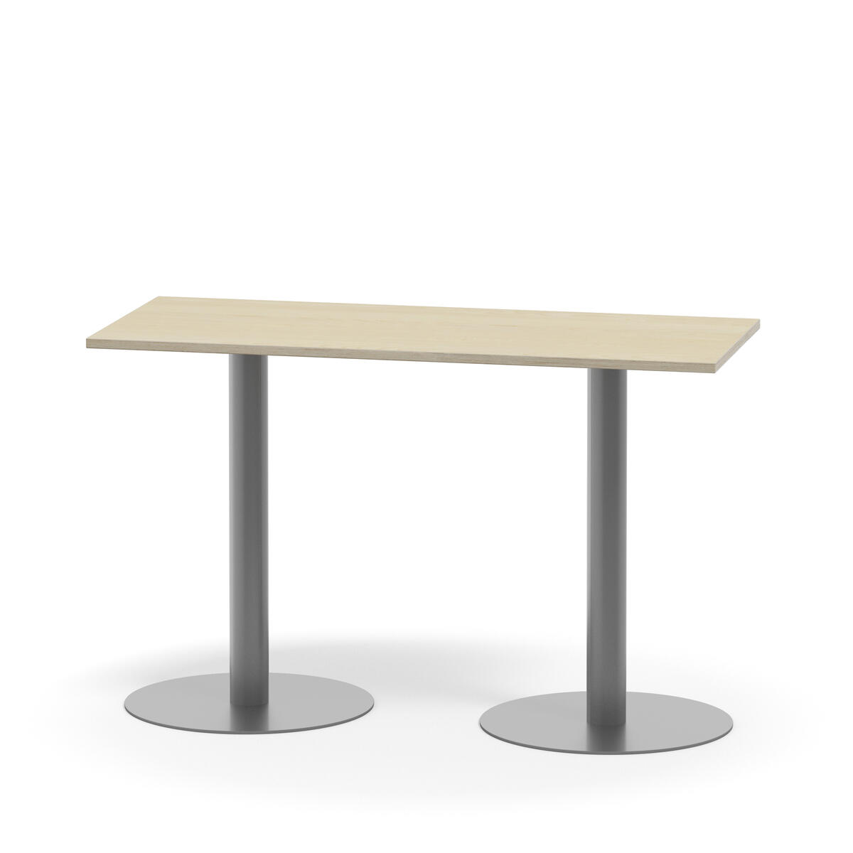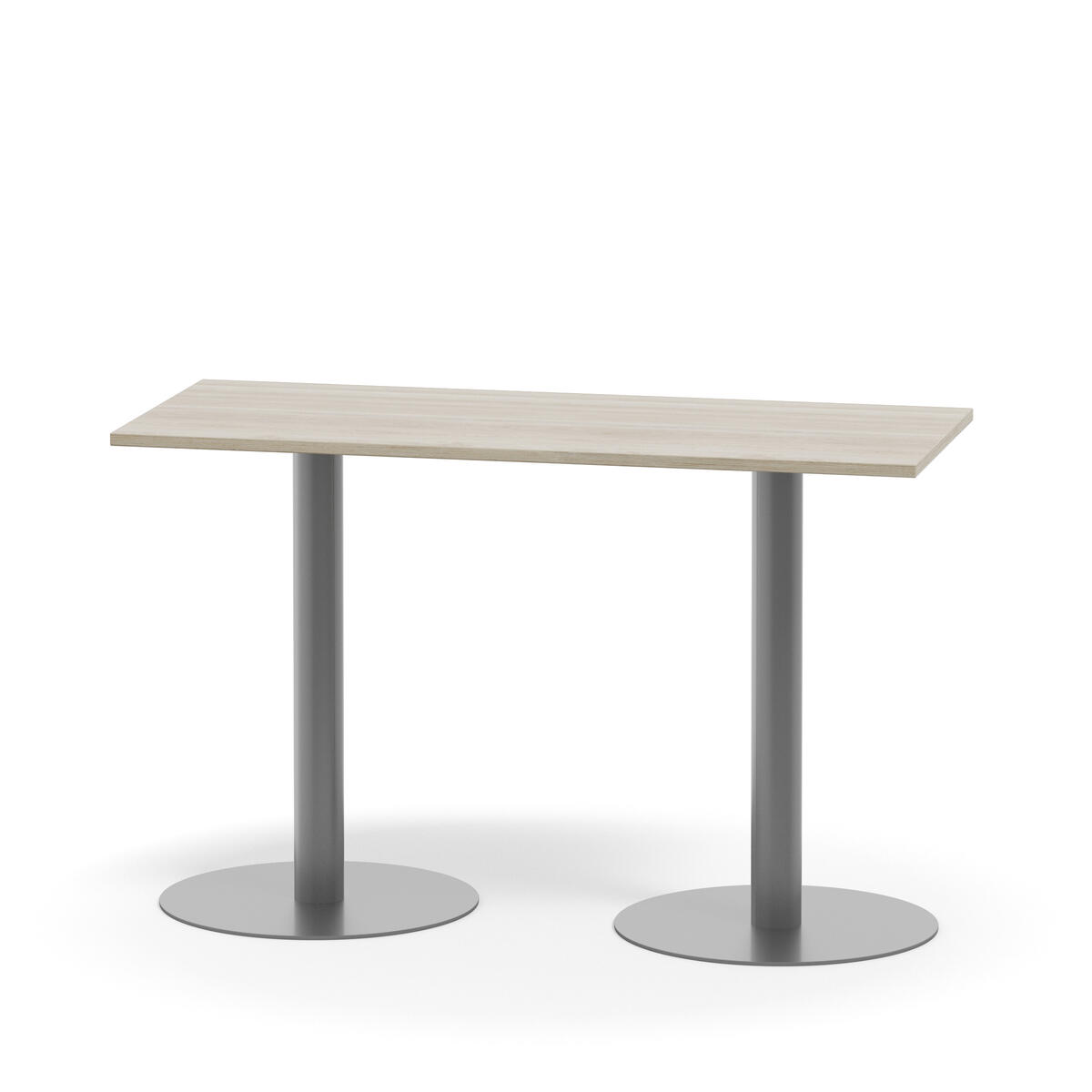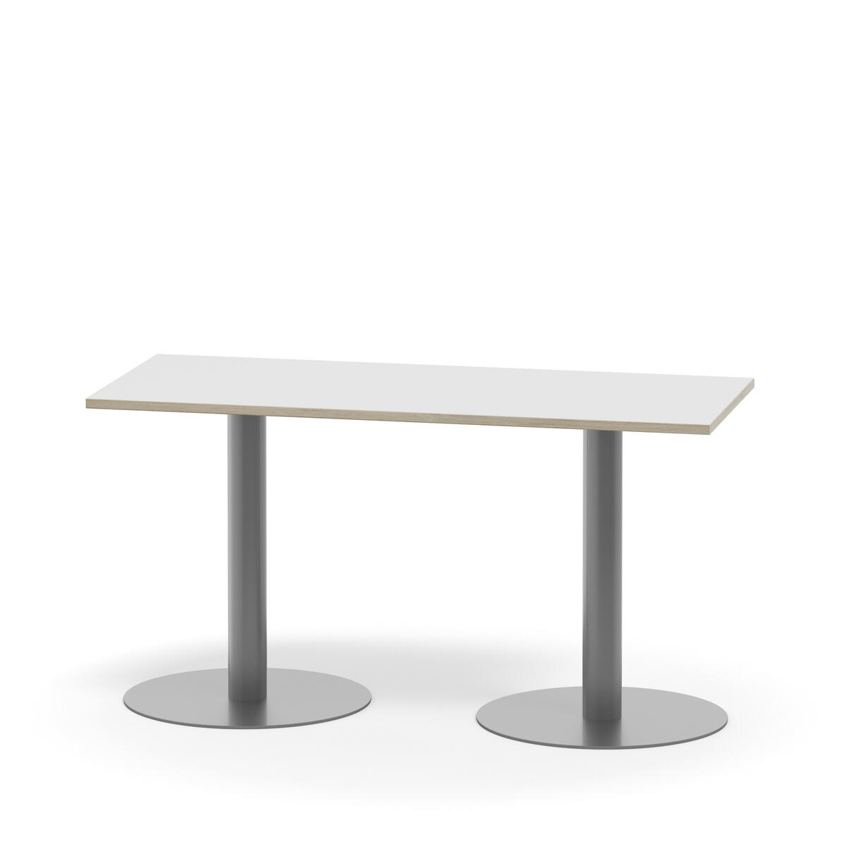 Pelarbord med lackat stativ i RAL 9006. Ljuddämpande bordsskiva belagd med tåligt högtryckslaminat. Testat och godkänt enligt EN 15372:2016 som uppfyller krav för stabiltet, hållbarhet och säkerhet.
