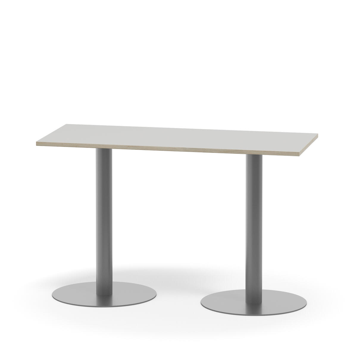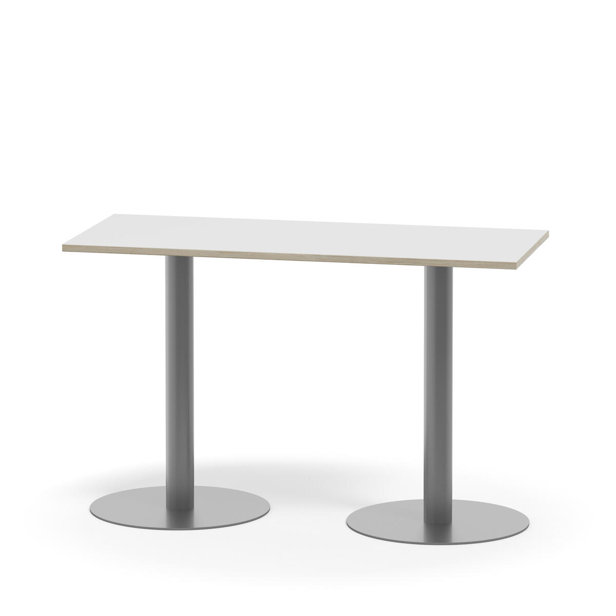 Pelarbord med lackat stativ i RAL 9006. Bordsskiva i tåligt högtryckslaminat. Testat och godkänt enligt EN 15372:2016 som uppfyller krav för stabiltet, hållbarhet och säkerhet.