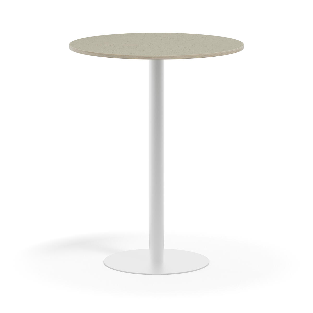 Pelarbord med lackat stativ i RAL 9003. Bordsskiva i tåligt högtryckslaminat. Testat och godkänt enligt EN 15372:2016 som uppfyller krav för stabiltet, hållbarhet och säkerhet.