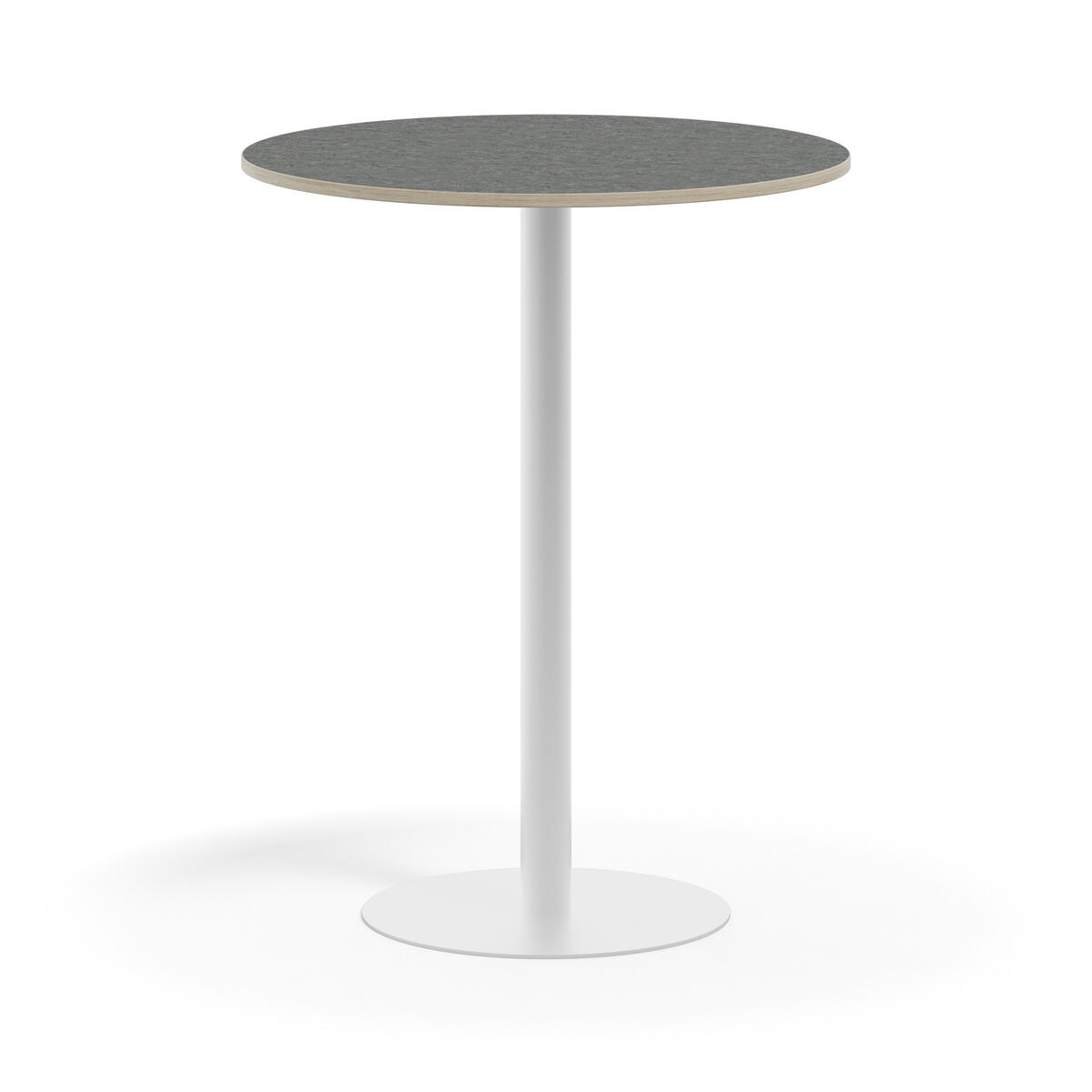 Pelarbord med lackat stativ i RAL 9003. Ljuddämpande bordsskiva belagd med tåligt högtryckslaminat. Testat och godkänt enligt EN 15372:2016 som uppfyller krav för stabiltet, hållbarhet och säkerhet.