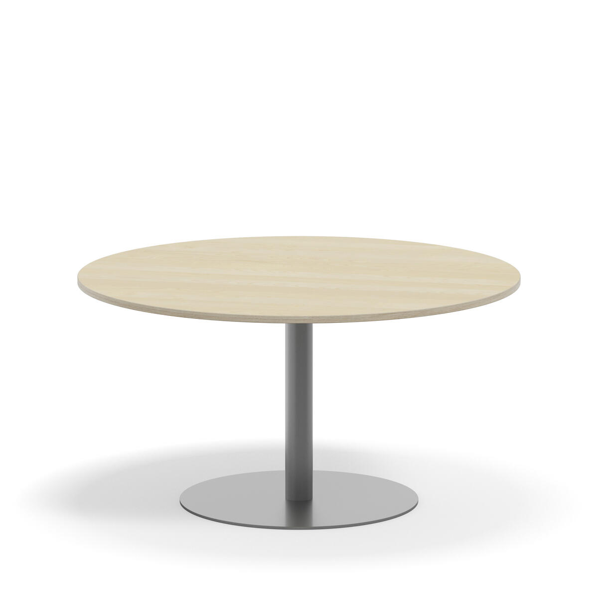 Pelarbord med lackat stativ i RAL 9006. Ljuddämpande bordsskiva belagd med tåligt högtryckslaminat. Testat och godkänt enligt EN 15372:2016 som uppfyller krav för stabiltet, hållbarhet och säkerhet.