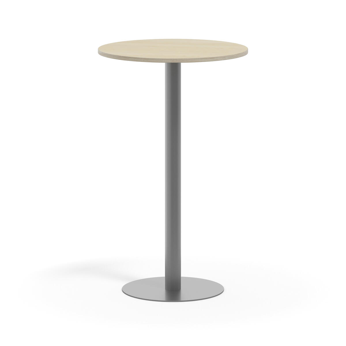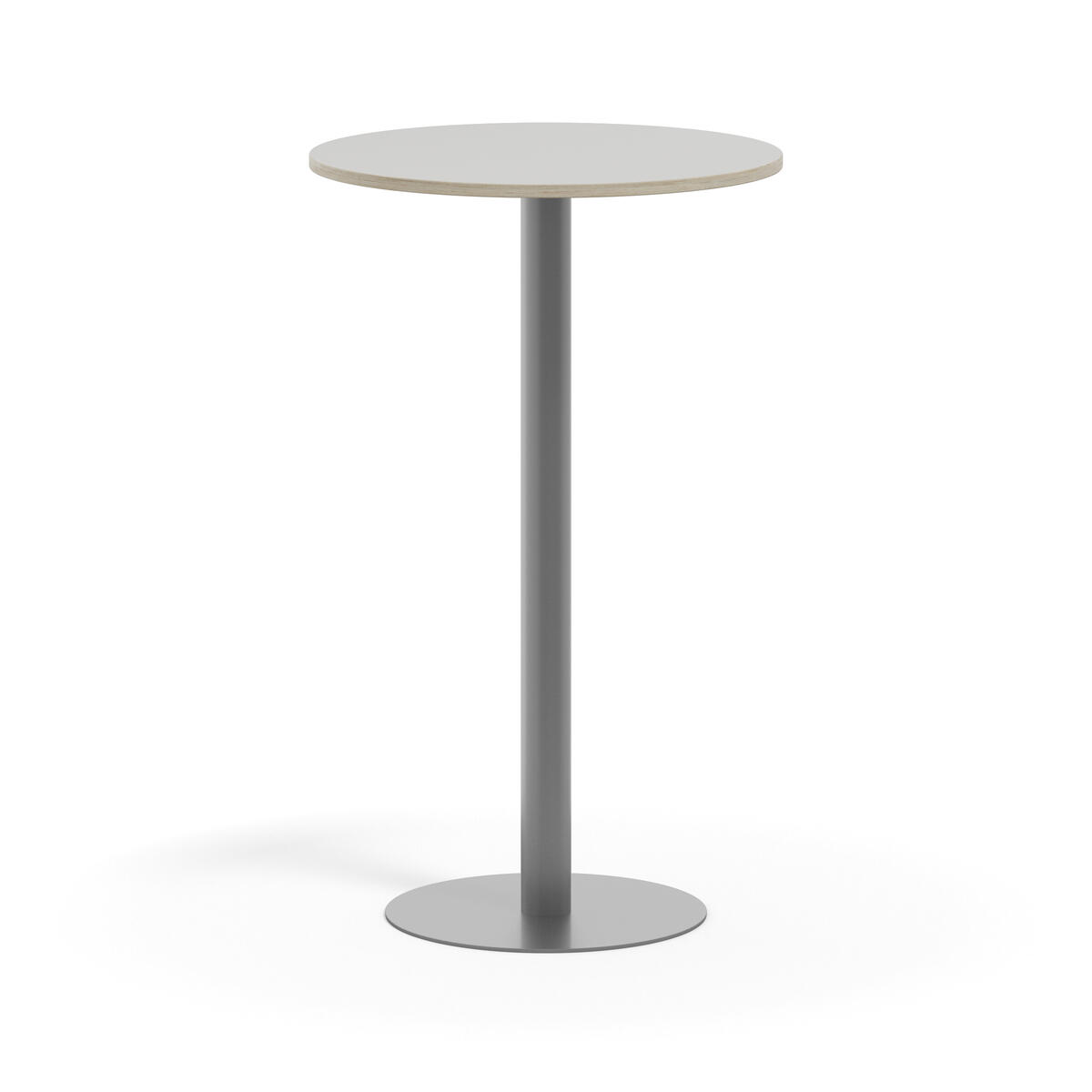 Pelarbord med lackat stativ i RAL 9006. Bordsskiva i tåligt högtryckslaminat. Testat och godkänt enligt EN 15372:2016 som uppfyller krav för stabiltet, hållbarhet och säkerhet.