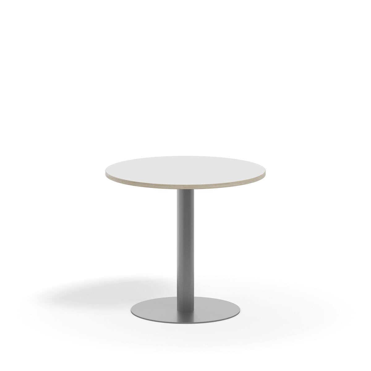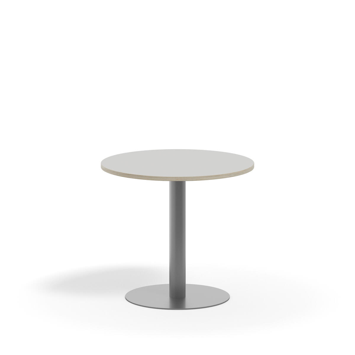 Pelarbord med lackat stativ i RAL 9006. Ljuddämpande bordsskiva belagd med tåligt högtryckslaminat. Testat och godkänt enligt EN 15372:2016 som uppfyller krav för stabiltet, hållbarhet och säkerhet.