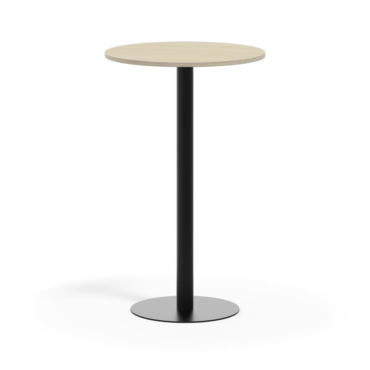 Pelarbord med lackat stativ i RAL 9005. Ljuddämpande bordsskiva belagd med tåligt högtryckslaminat. Testat och godkänt enligt EN 15372:2016 som uppfyller krav för stabiltet, hållbarhet och säkerhet.
