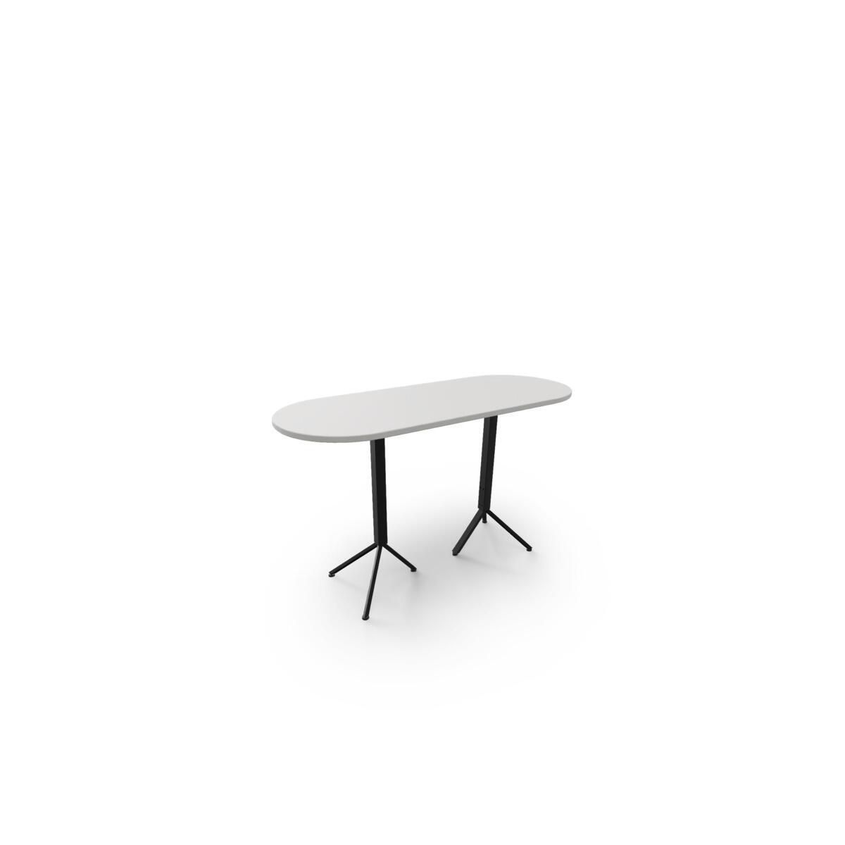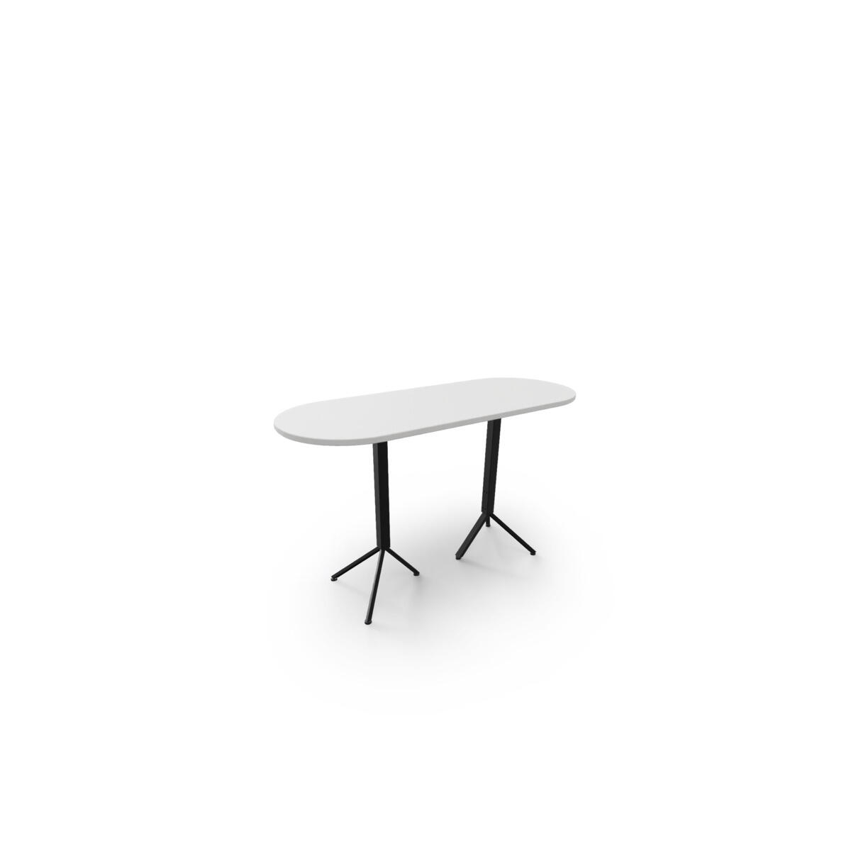 Tekla är ett stilrent och stabilt bord med en svävande designkänsla. Den robusta stommen med två pelare och fyra stödben på vardera ben ger utmärkt stabilitet. Välj mellan HPL eller NANO-skiva. HPL har raka kanter medan Nano har fasade kanter. Stativ i pulverlackad metall.