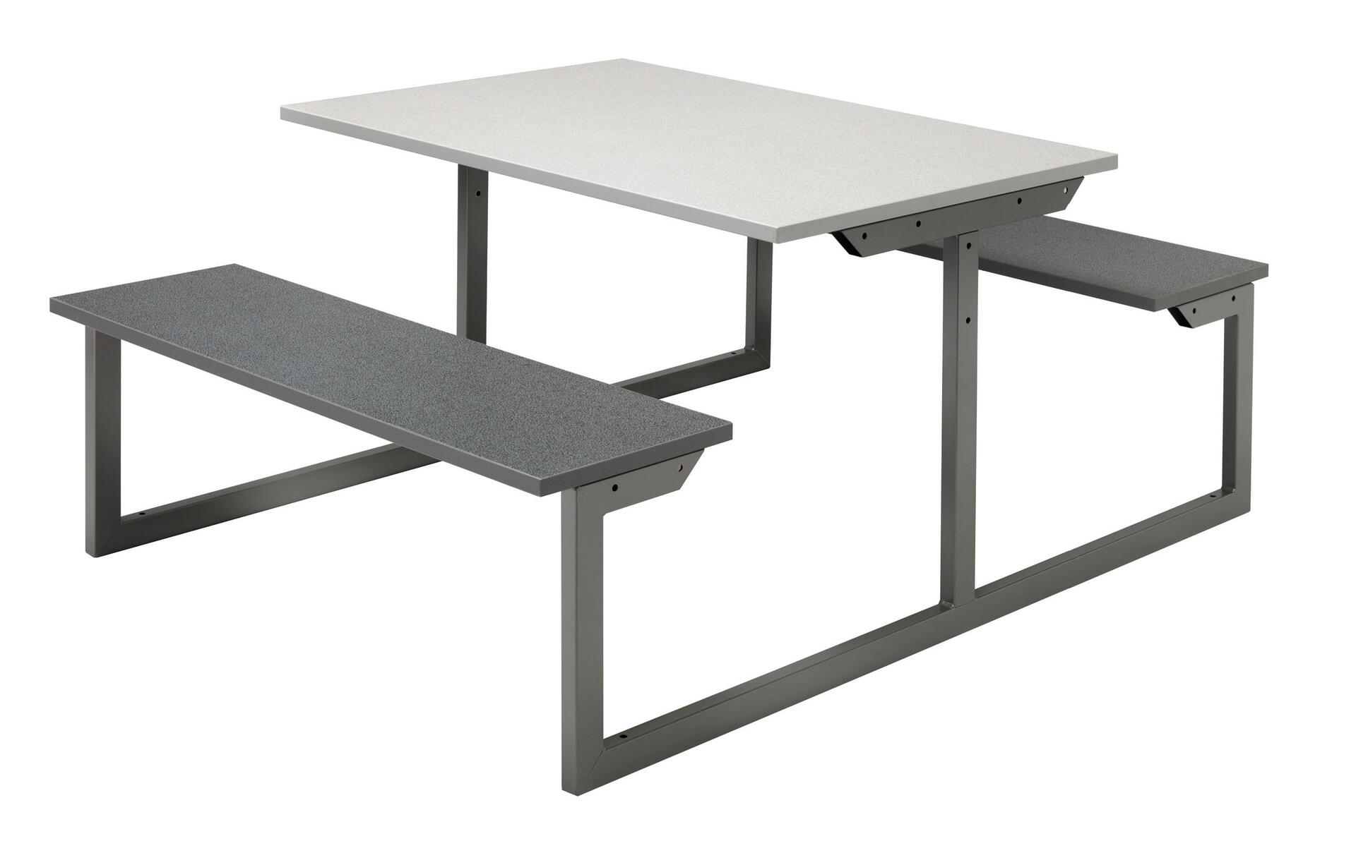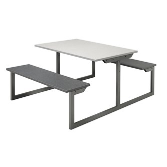 Sittbänk och bordsskiva inkl. stativ. Sitt- och bordsyta belagd med högtryckslaminat.Svart på sittbänk och grå på bord. Stativ grafitgrå, RAL 9007. Levereras omonterad. Sitthöjd 47 cm, bordshöjd 74 cm. Vikt 45 kg.