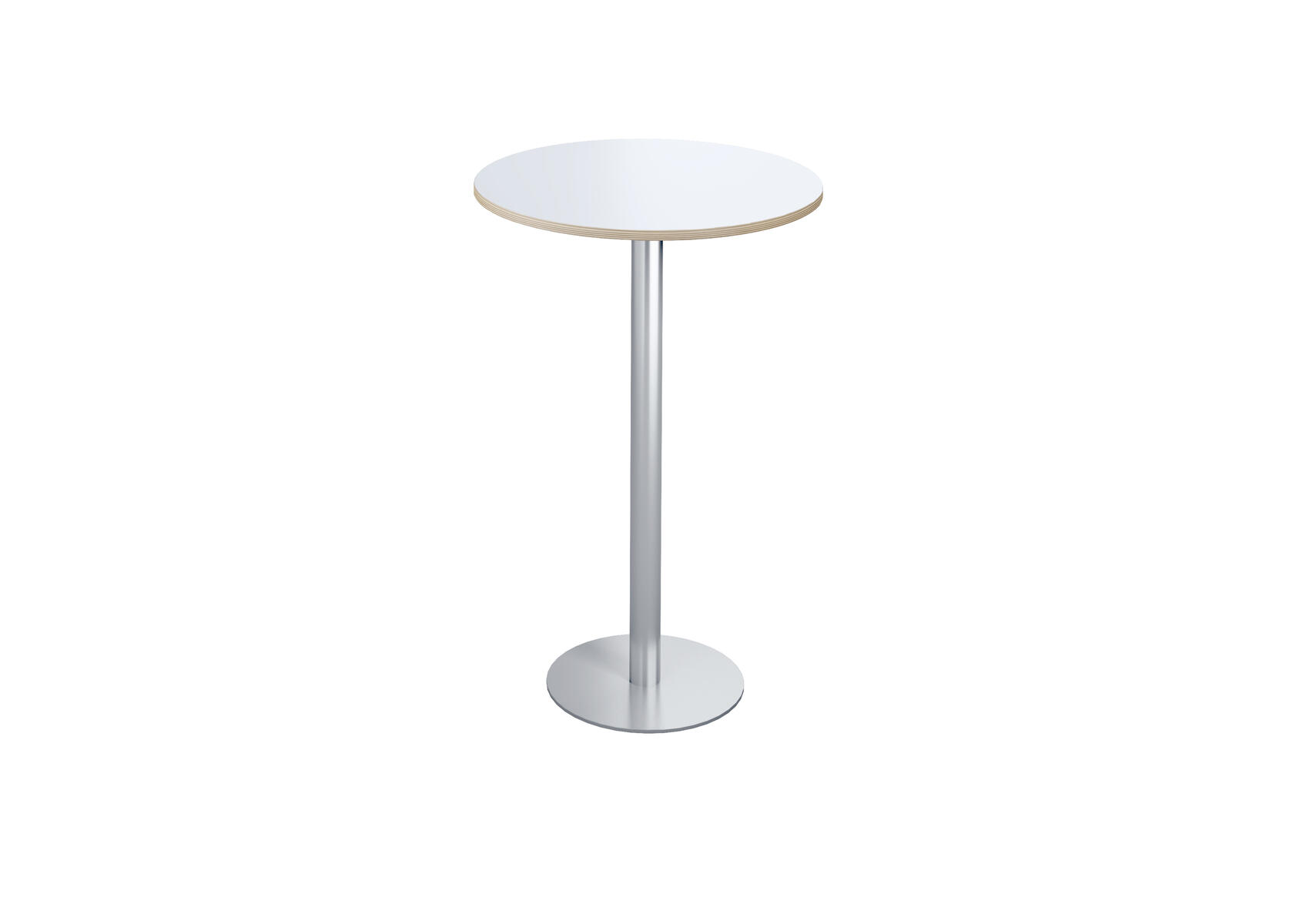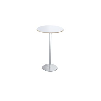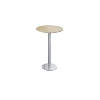 Skiva i akustiklaminat. Rundade hörn på skivan, 5 cm radie. Björkmönstrad ABS-kantlist. 4 cm hög sarg. Silverlackerat stålstativ med avtagbara runda ben i ø 4 cm. Ställbara tassar och förstärkt gods i infästningen.