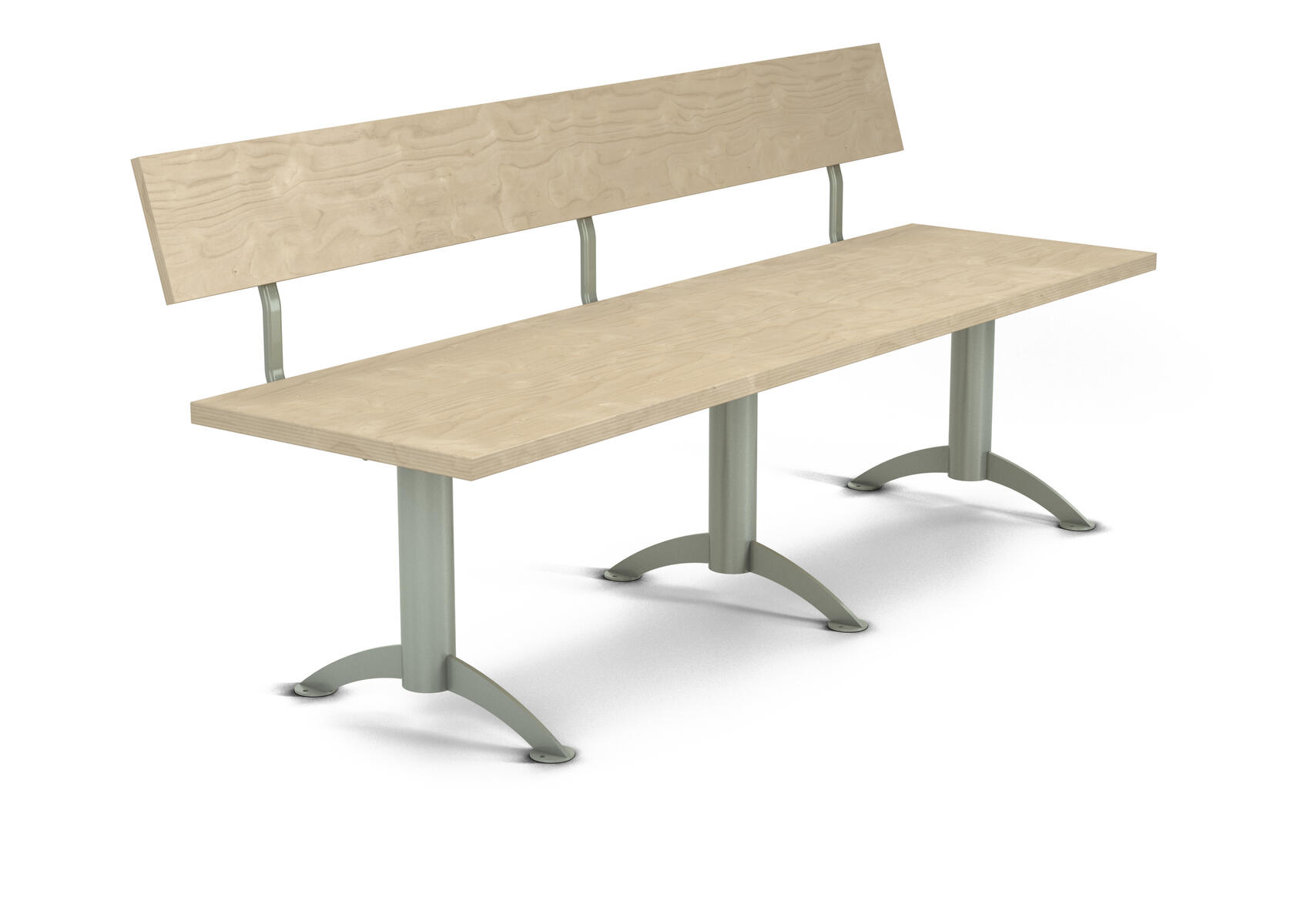 Radien är 2 m, d.v.s. ⌀ 4 m vid ihopsättning av 4 bänkar. Sittbänk belagd med högtryckslaminat. Stativ silverlackerat 9006. Sitthöjd 44 cm. Förberedd för golvmontering.