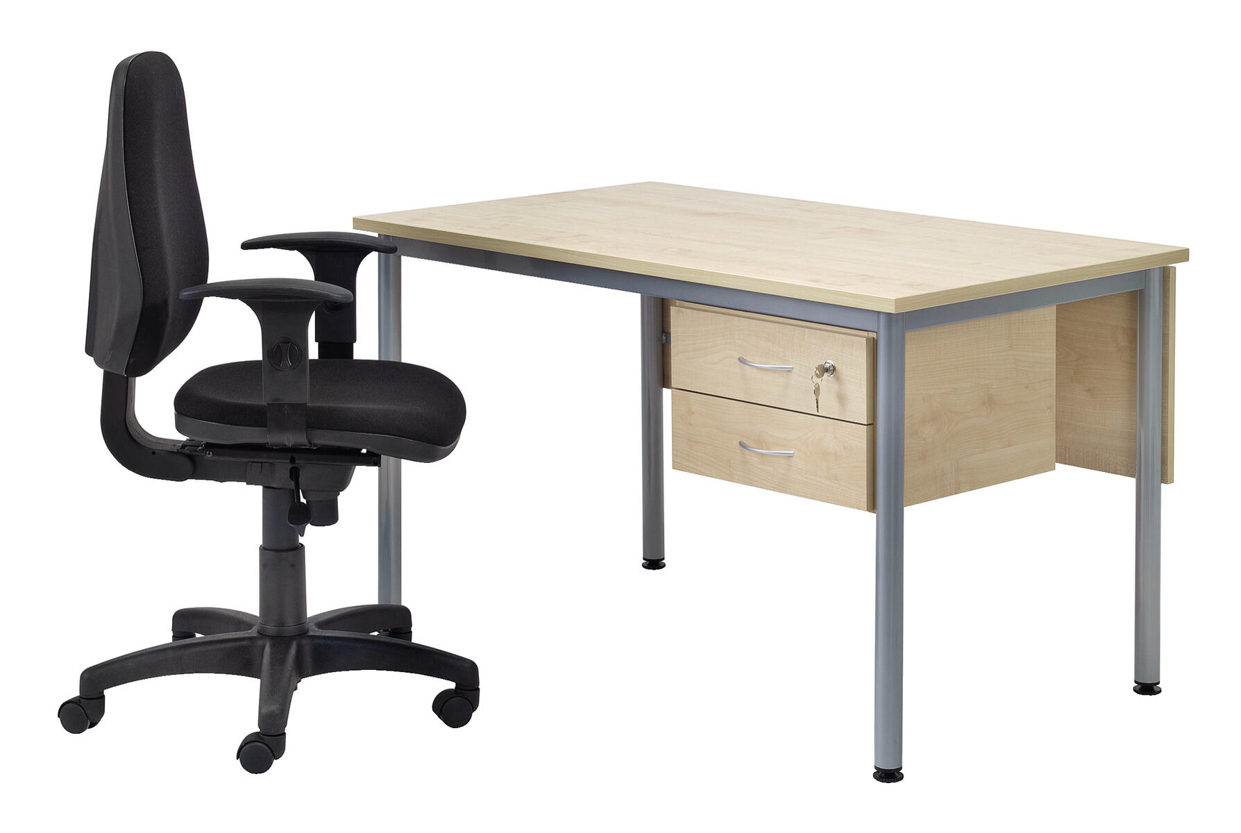 Synkronmekanism, låsbar i 5 olika lägen. Höj- och sänkbar, 44–57 cm. Ryggen ställbar i höjd. Sitsdjup ställbart 44–50 cm. Inkl. höjdjusterbara armstöd.