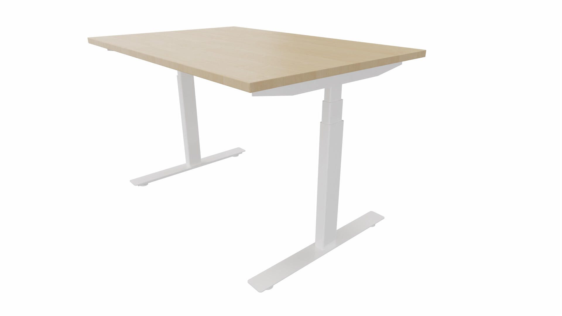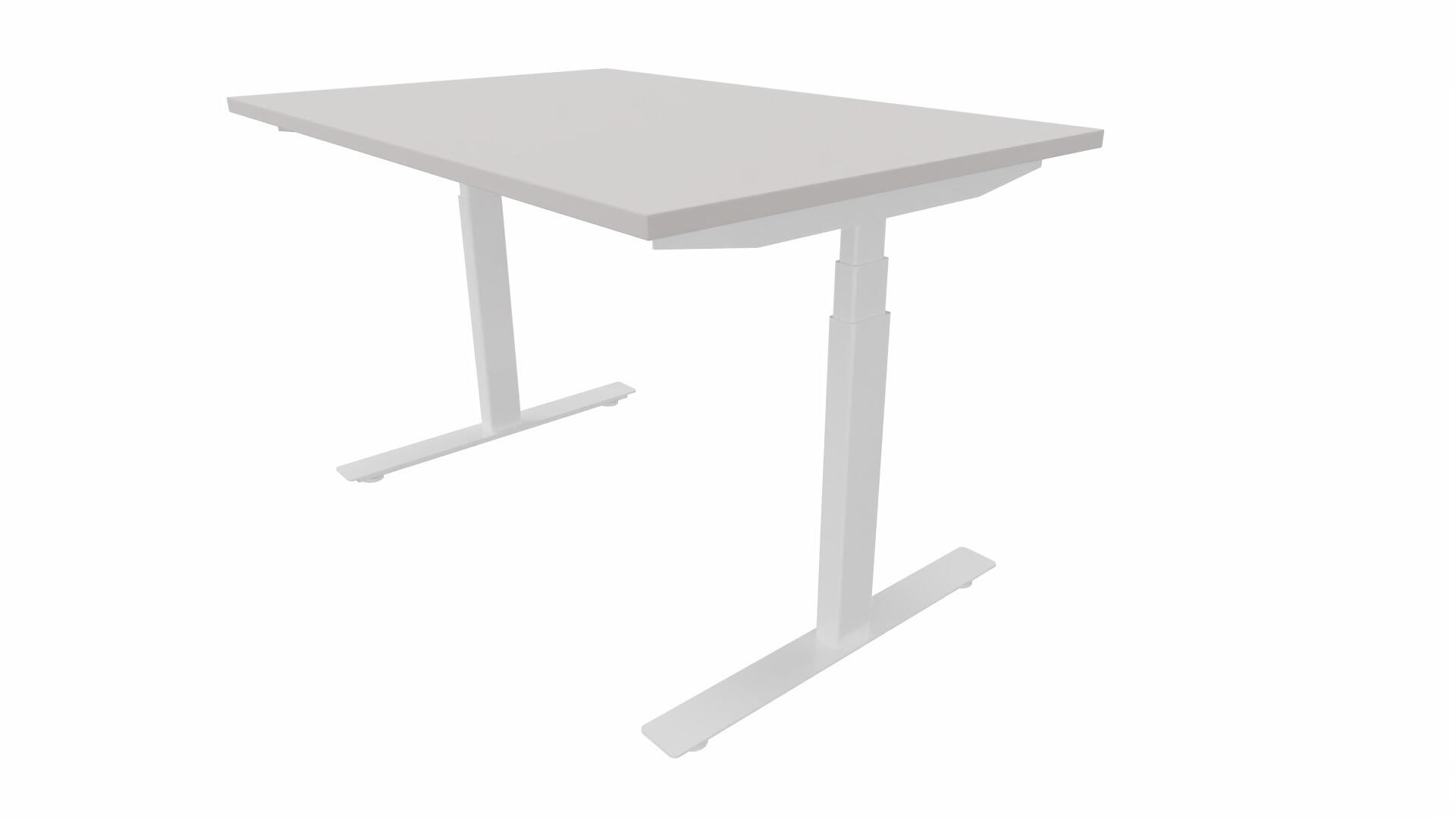 Bordsskiva i direktlaminat med ABS-kant. Med sin breda justeringsintervall (615 - 1275 mm ±5 mm exkl.bordsskiva) kan skrivbordet enkelt anpassas. Anti-collision-funktion känner av hinder när skrivbordet sänks eller höjs och reagerar snabbt genom att stoppa stativet. Stativet är utrustat med ställbara fötter för ojämnt underlag. Mått fot: L49xB6 cm.
