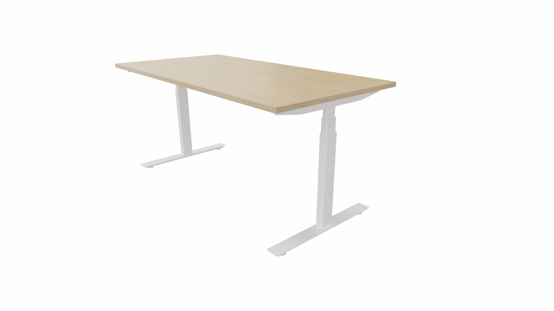 Bordsskiva i direktlaminat med ABS-kant. Med sin breda justeringsintervall (615 - 1275 mm ±5 mm exkl.bordsskiva) kan skrivbordet enkelt anpassas. Anti-collision-funktion känner av hinder när skrivbordet sänks eller höjs och reagerar snabbt genom att stoppa stativet. Stativet är utrustat med ställbara fötter för ojämnt underlag. Mått fot: L49xB6 cm.