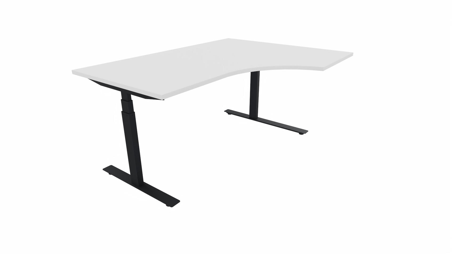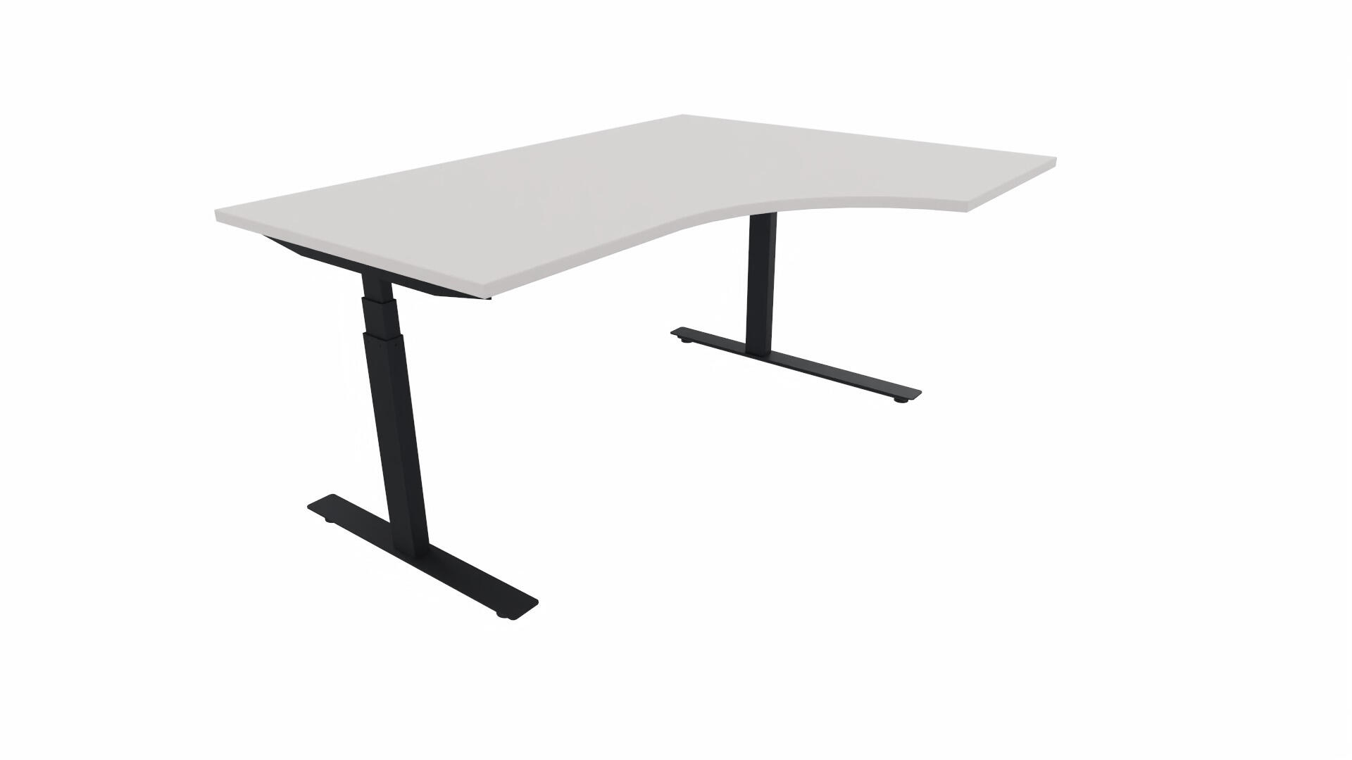 Bordsskiva i direktlaminat med ABS-kant. Med sin breda justeringsintervall (615 - 1275 mm ±5 mm exkl.bordsskiva) kan skrivbordet enkelt anpassas. Anti-collision-funktion känner av hinder när skrivbordet sänks eller höjs och reagerar snabbt genom att stoppa stativet. Stativet är utrustat med ställbara fötter för ojämnt underlag. Mått fot: L49xB6 cm.