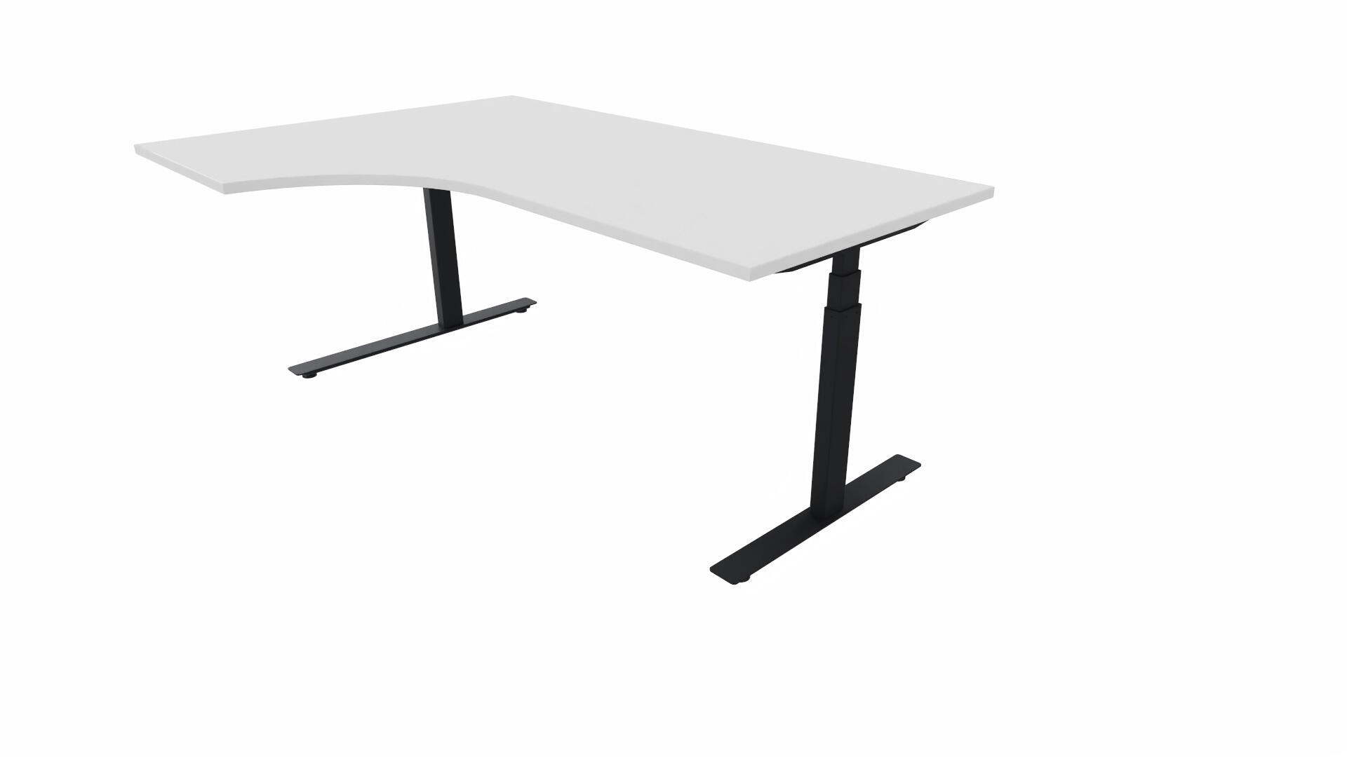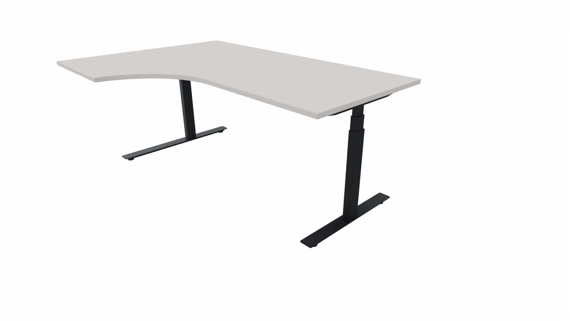 Bordsskiva i direktlaminat med ABS-kant. Med sin breda justeringsintervall (615 - 1275 mm ±5 mm exkl.bordsskiva) kan skrivbordet enkelt anpassas. Anti-collision-funktion känner av hinder när skrivbordet sänks eller höjs och reagerar snabbt genom att stoppa stativet. Stativet är utrustat med ställbara fötter för ojämnt underlag. Mått fot: L49xB6 cm.