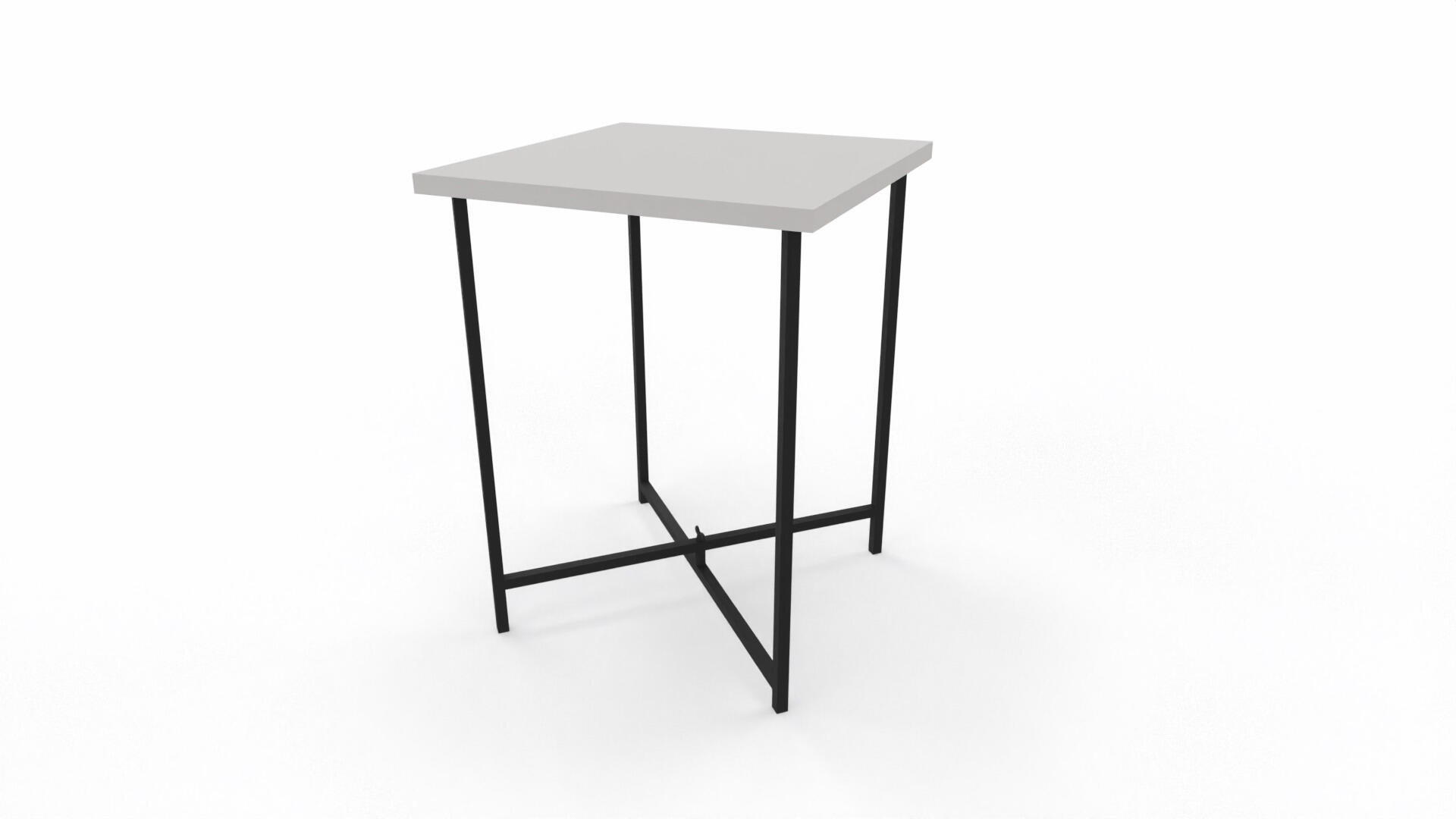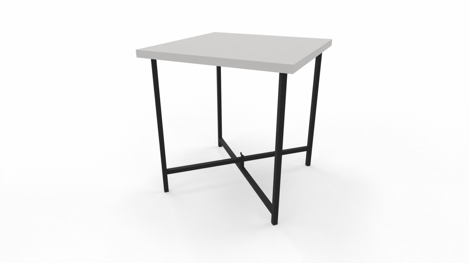 Bord med 18 mm melaminbelagd bordsskiva. Stativ med fyrkantsprofilerade ben i RAL9006. Bordet kräver montering.