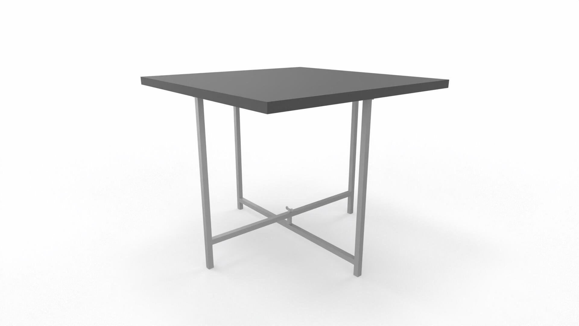 Bord med 18 mm melaminbelagd bordsskiva. Krysstativ i RAL9005. Bordet kräver montering.