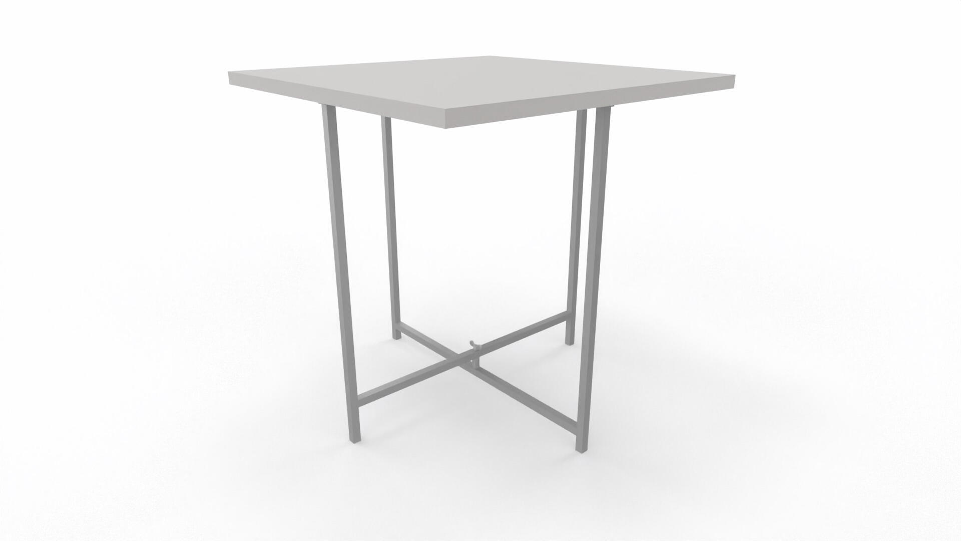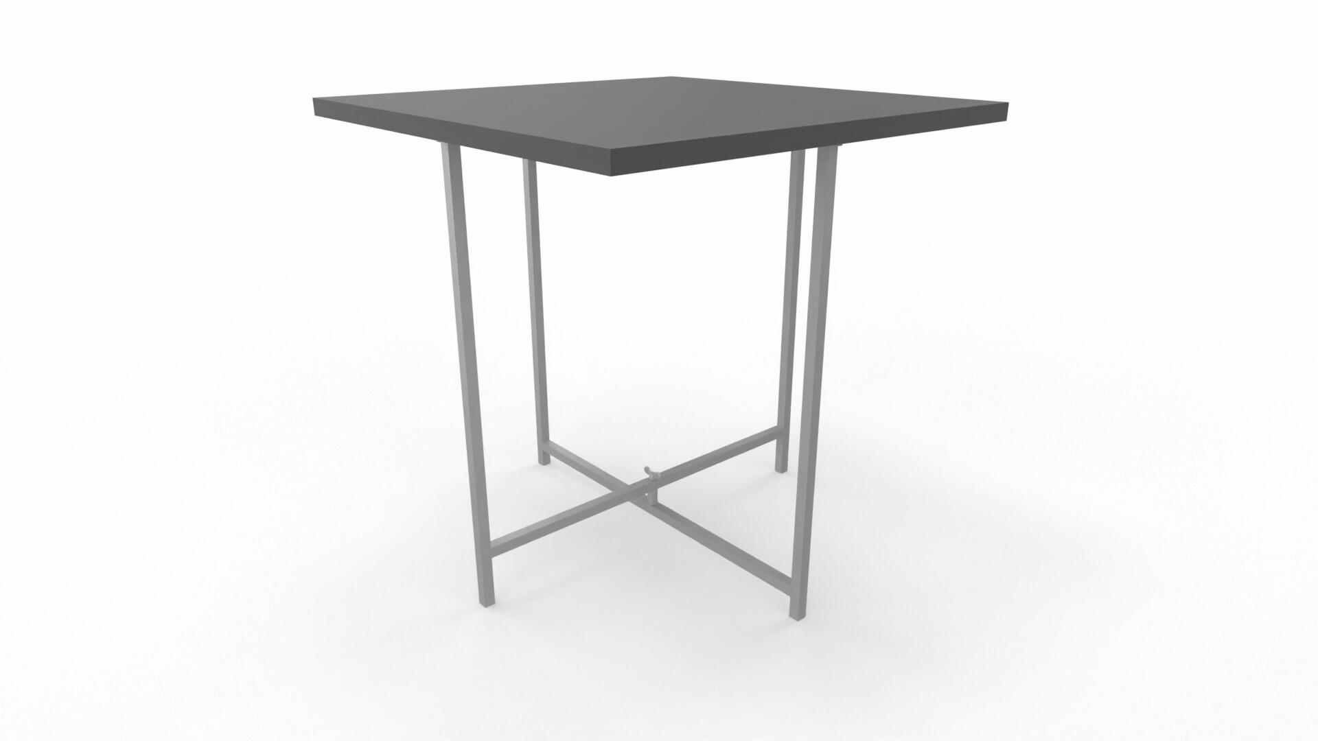 Bord med 25 mm melaminbelagd bordsskiva. Metallstativ i RAL9006. Bordet kräver montering.