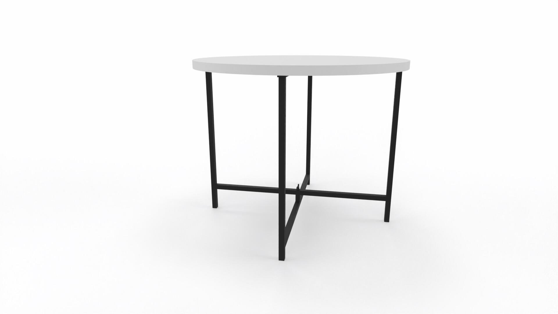 Bord med 18 mm melaminbelagd bordsskiva. Krysstativ i RAL9005. Bordet kräver montering.