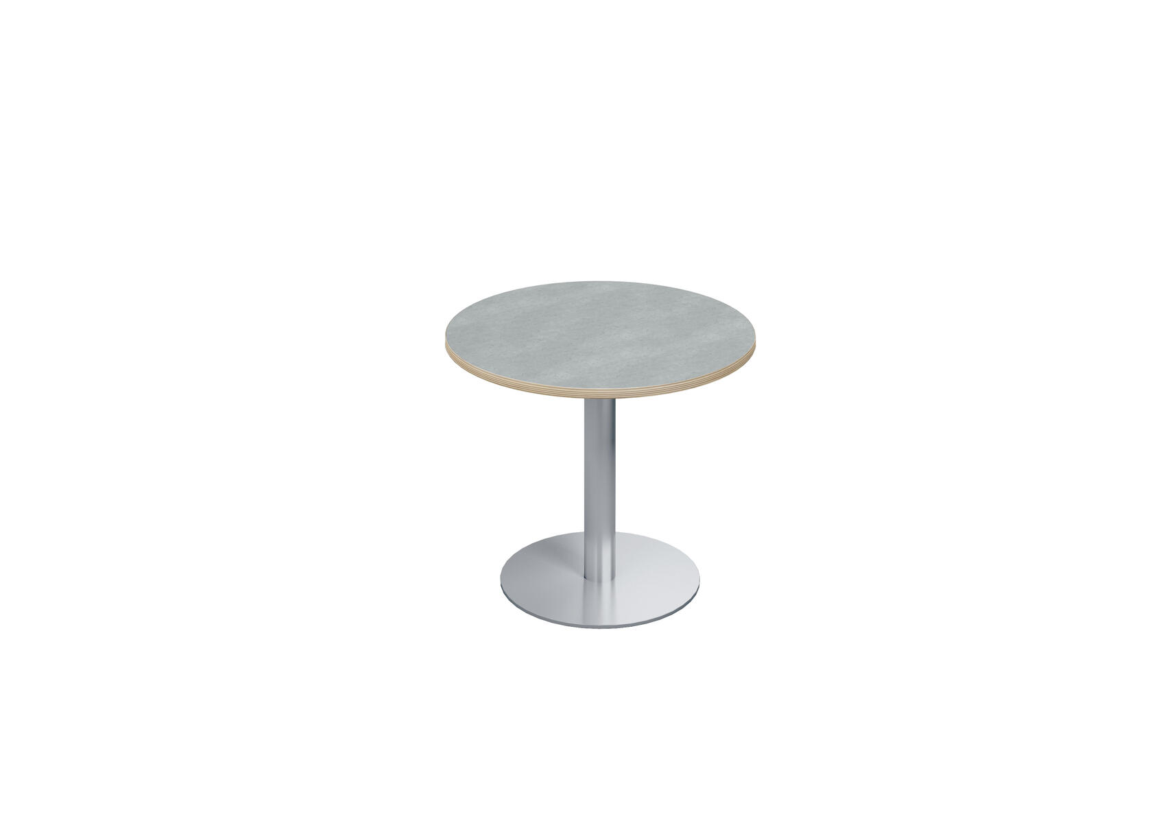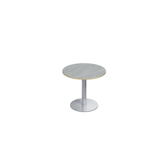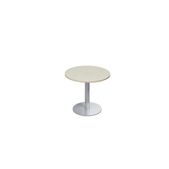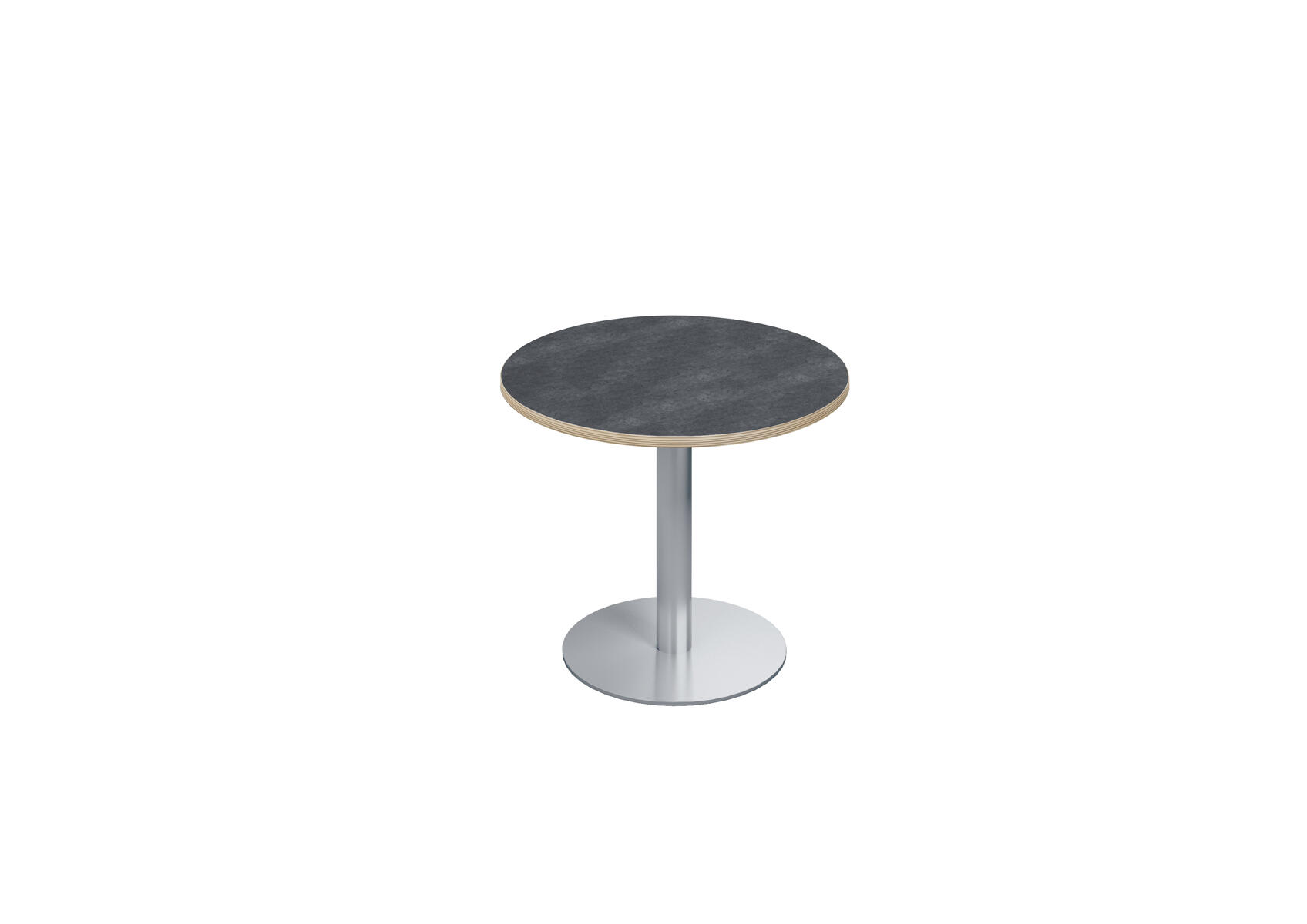 Borstat rostfritt stålrör. Höjd 60 cm. Runt ø 70 cm. Skiva i högtryckslaminat.