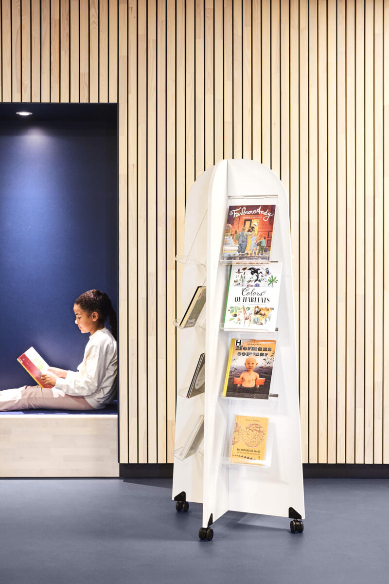 Läshörna i form av ett träd. En kombination av sittdel, förvaring och myshörna. Matta inkluderat. Dekorera och designa trädgrenar enligt säsong eller tema. Mått matta L200xB200 cm.