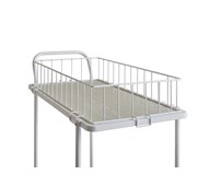 Fästs på vagnen, kan användas både uppe och nere. Placeras på vagn genom att flexa ut sidorna. Avdelare kan användas tillsammans med ram. Först fästs ramen sen avskiljare. Mått: B43xH12, totalhöjd 14,5 cm. ø 4 mm tråd. Snäppbeslag B4,5 cm. Säljs styckvis.