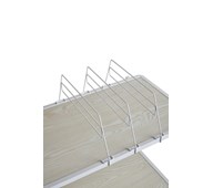 Fästs på vagnen, kan användas både upp och nere. Klickas fast på vagnen. Avdelare kan användas tillsammans med ram. Först fästs ramen sen avskiljare. Mått: L75x B39xH13 cm. ø 4 mm lodrät tråd, ø 6 mm vågrät tråd. 54 mm mellan stående tråd/galler.
