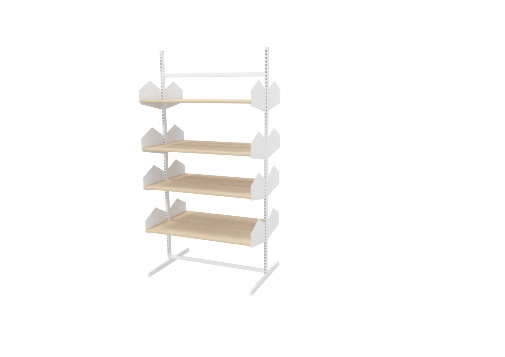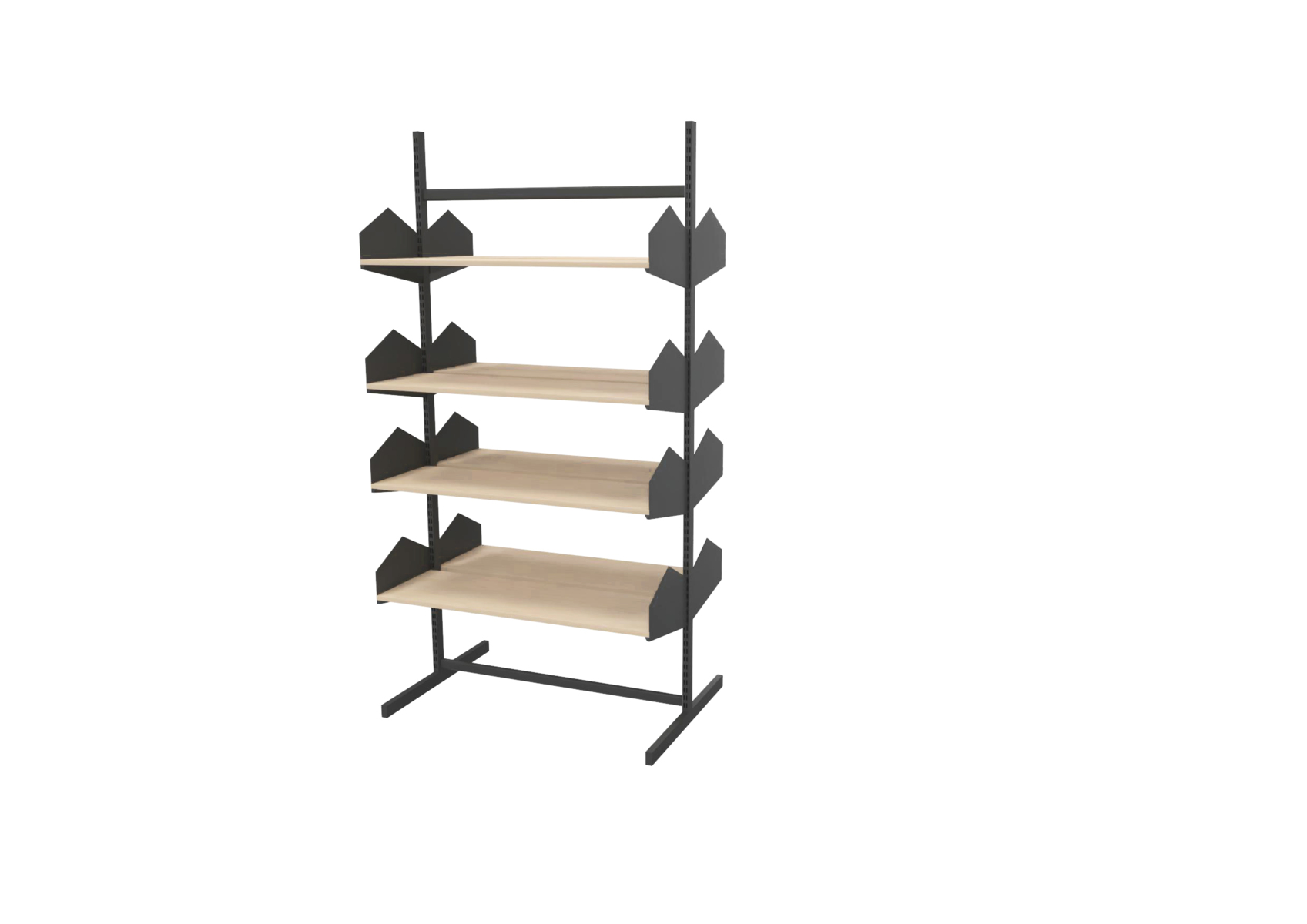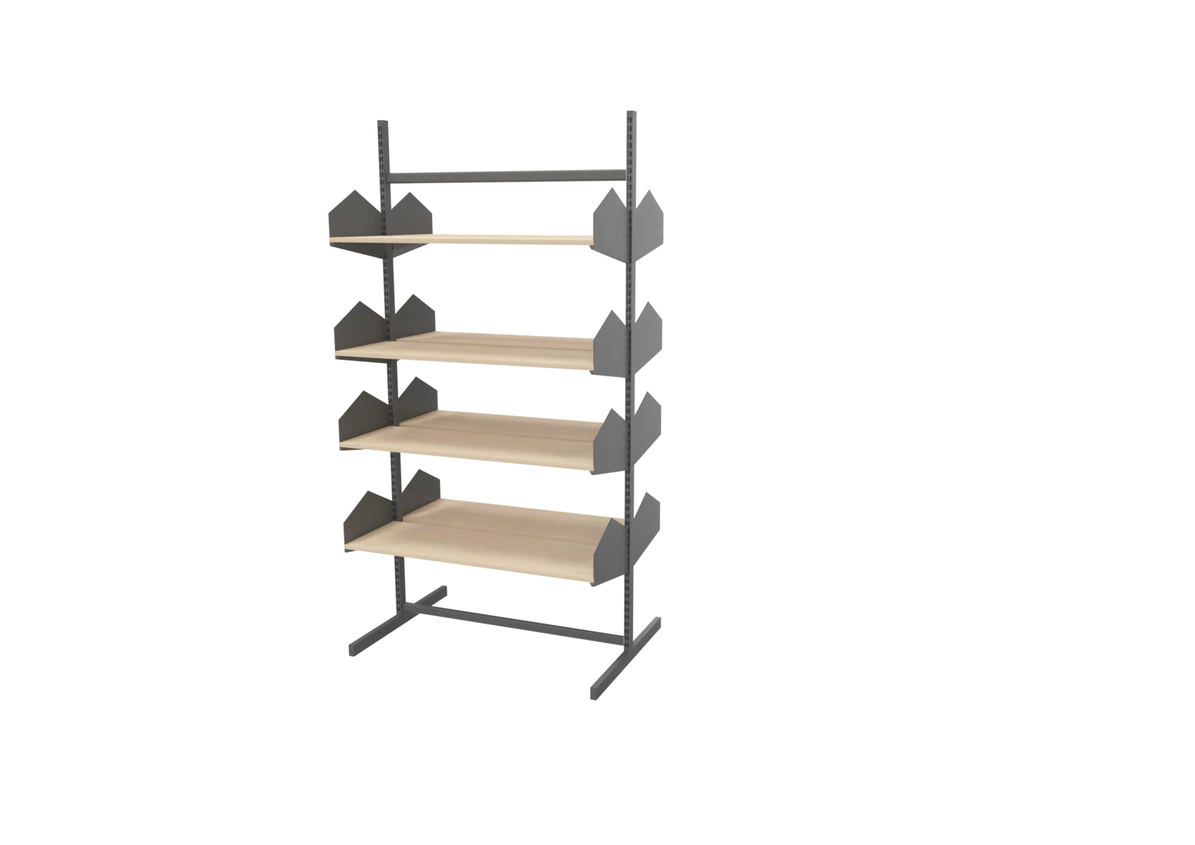 Bokvagn med 4 rörliga dubbelhjul varav 2 låsbara. Monterade vid leverans. Alla fyra sidor har 3 transparanta fack i A4-format och 3 hyllplan. Material: 18 mm spånskiva med laminat. Kantband i plywoodlook. Mått: H120x60x60 cm. Bottenplattan 69x69 cm. Hyllplan 27x27 cm. Höjd mellan hyllplan 35 cm. Från golv till bottenplattans ovandel 10 cm.