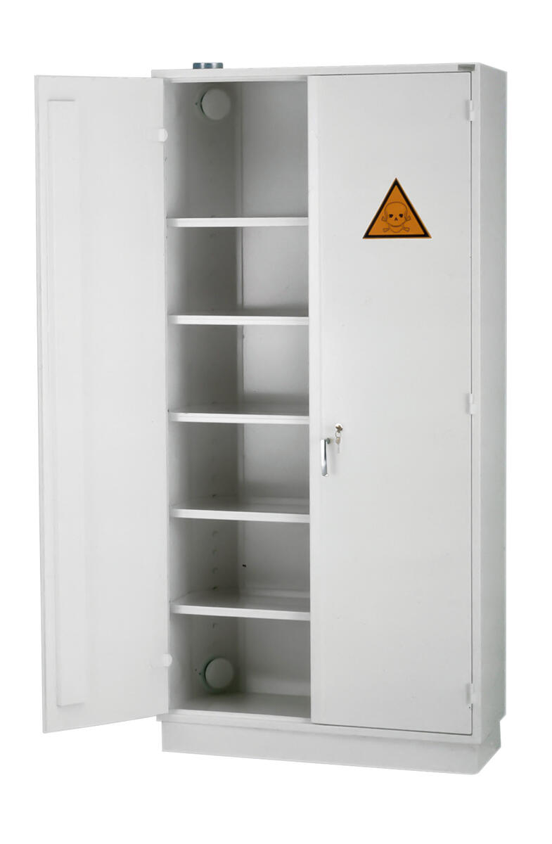 Gifter, syror, baser och andra hälsofarliga ämnen ska förvaras i separata och väl ventilerade skåp. Då syror och baser är korrosiva så är också materialvalet till dessa skåp av extra stor betydelse. Vårt trippelkombinationsskåp svarar mot dessa högt ställda krav. Mått: 100x45x210 cm (inklusive sockel på 15 cm).