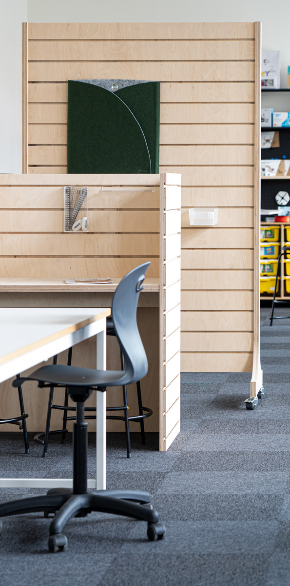 Creo skärmvägg med hjul, 2 fasta och 2 rörliga låsbara. Har spår för upphängning. Tillverkad av 30 mm olackerad björkplywood. Avståndet mellan spåren är 10 cm. Tillbehör köps separat.