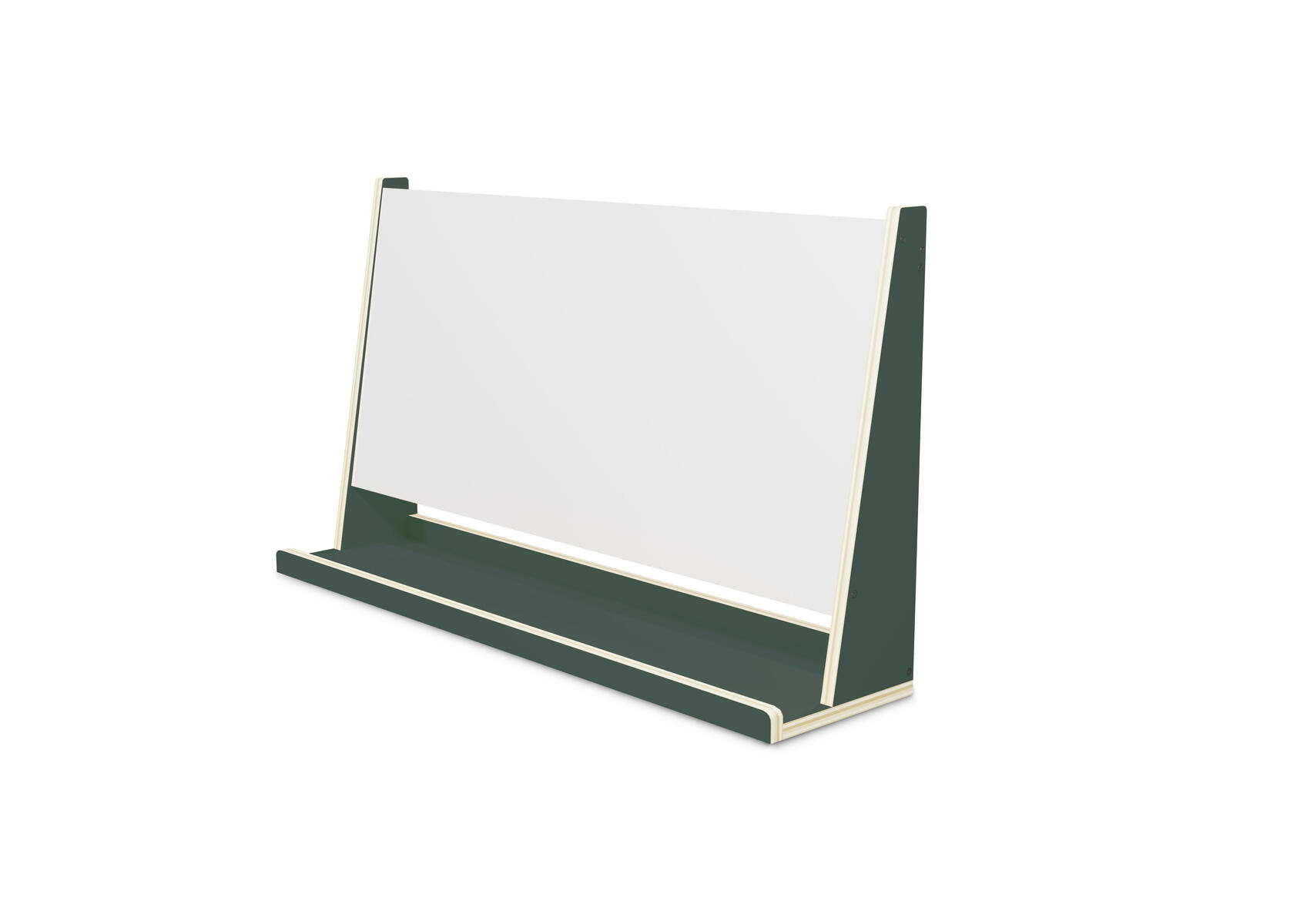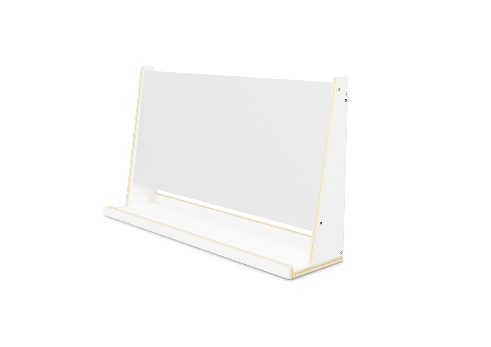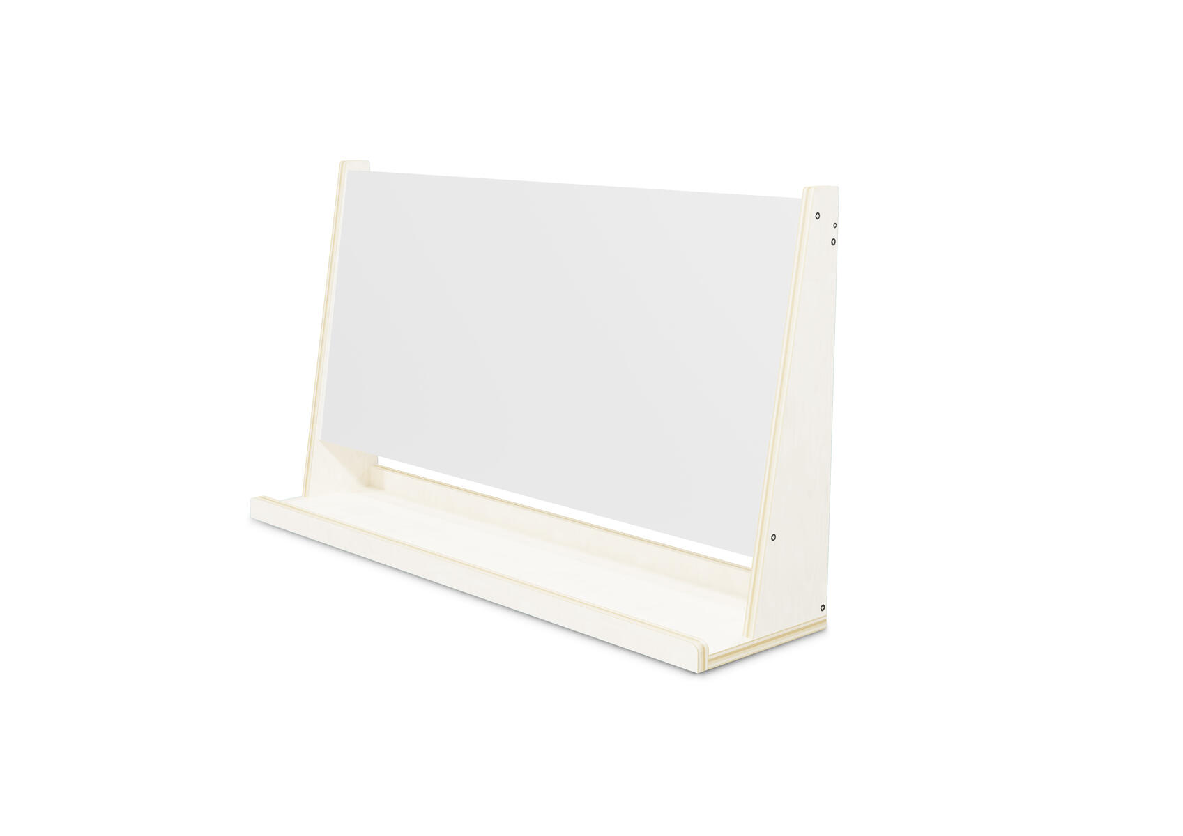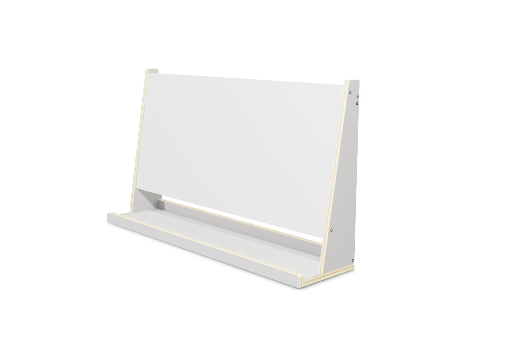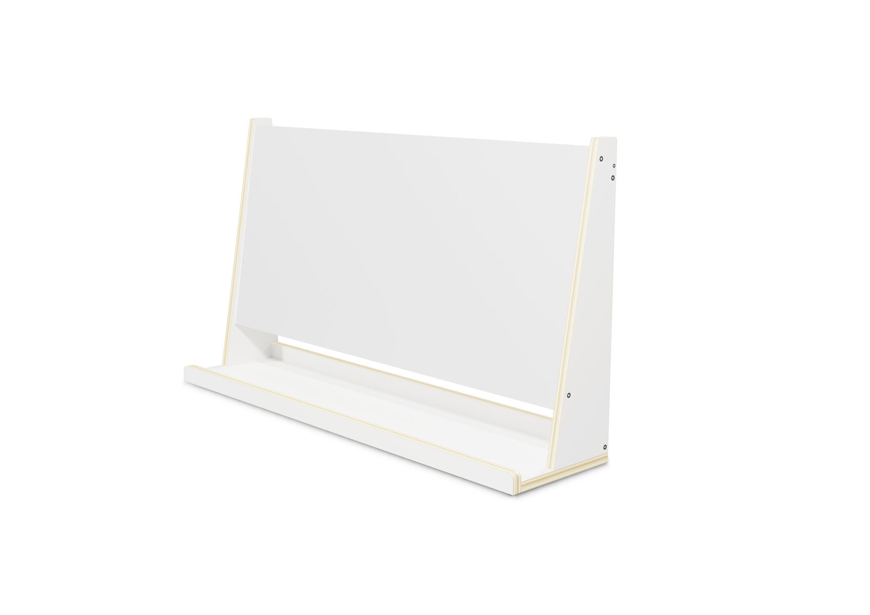 Staffli med lutande whiteboard. Färdig modul. Smart upphängning med list ingår. Gjord i 16 mm björkplywood. Färger med HT är med högtryckslaminat. Björk och vitpigmenterad är helt i 18 mm plywood. Mått: B88xD22xH50 cm. Djup 4 cm upptill, 18 cm i nederkant.