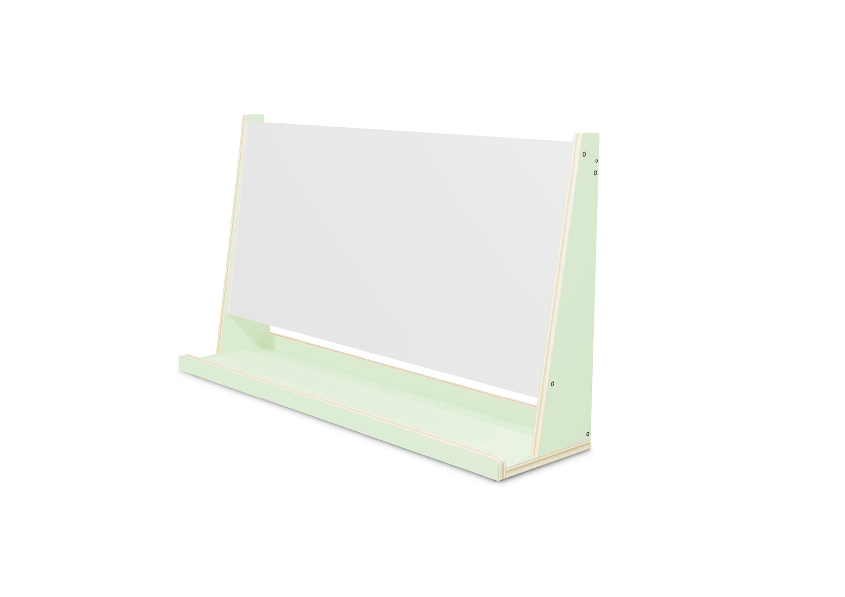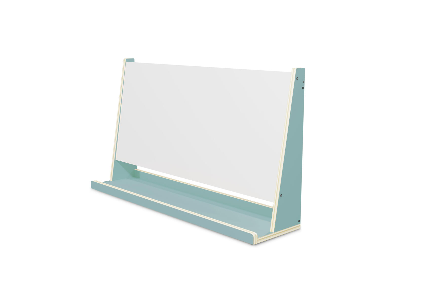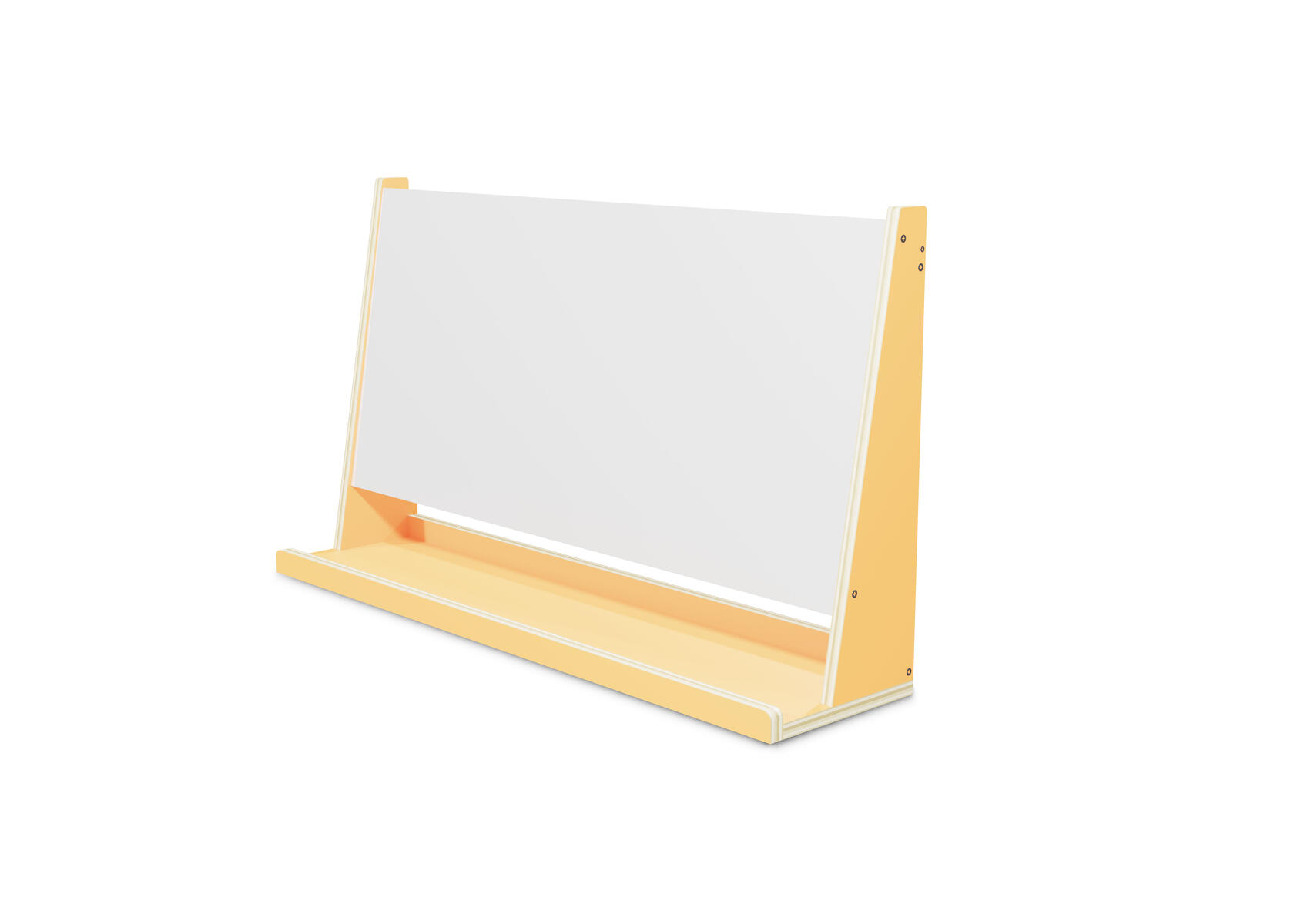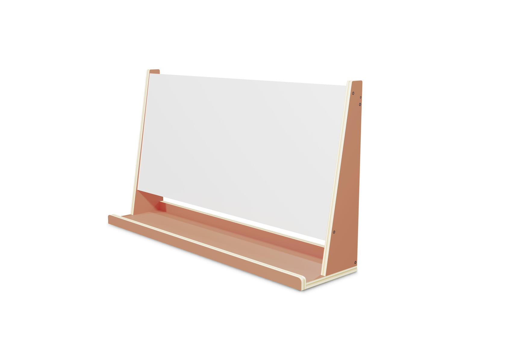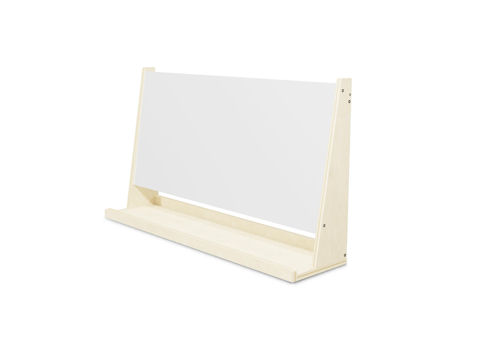 Staffli med lutande whiteboard. Färdig modul. Smart upphängning med list ingår. Gjord i 16 mm björkplywood. Färger med HT är med högtryckslaminat. Björk och vitpigmenterad är helt i 18 mm plywood. Mått: B88xD22xH50 cm. Djup 4 cm upptill, 18 cm i nederkant.