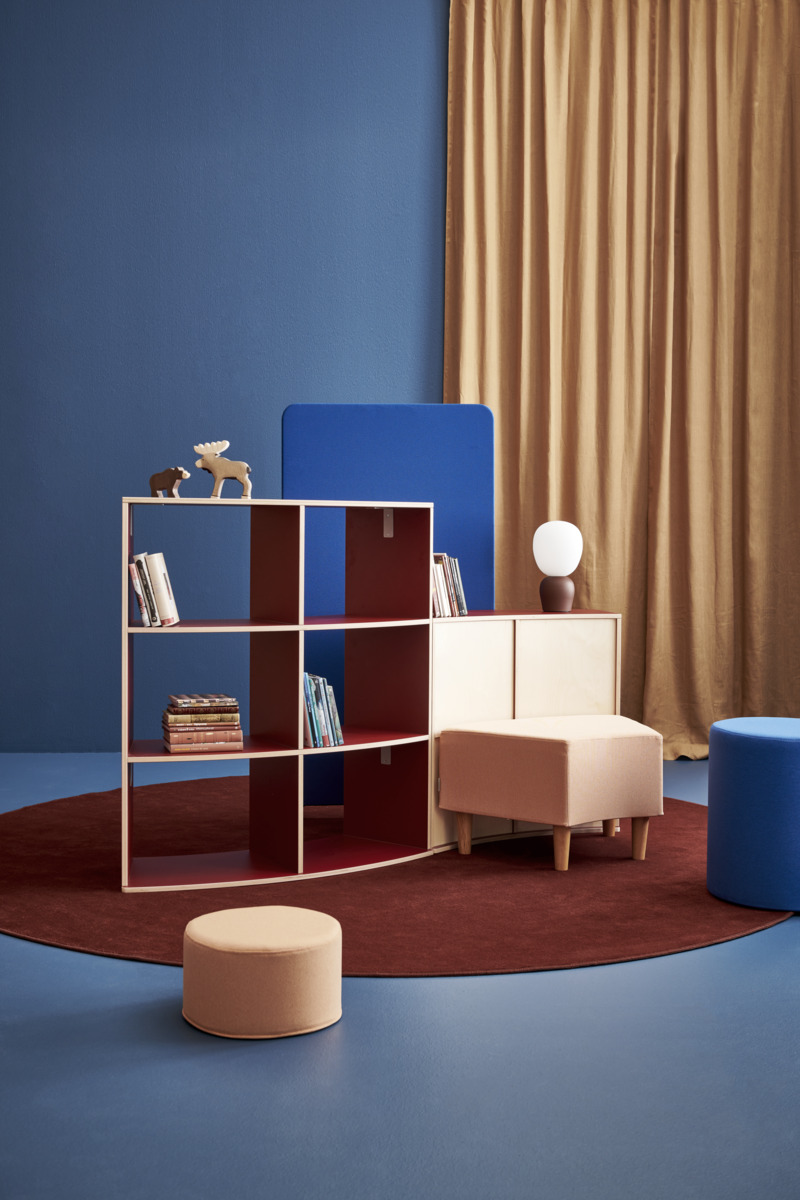 Svängd förvaring i björkplywood med högtryckslaminat. Björk och vitpigmenterad helt i plywood. Tunn rygg i björkplywood, 4 mm. Välj mellan endast stomme eller stomme med ben. 5 ben. Passar till sittmodul Snake utan rygg. Ben bygger 10 cm. Svanenmärkt, licensnummer 5031 0099.