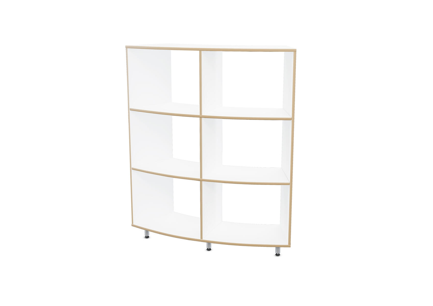 Svängd förvaring i björkplywood med högtryckslaminat. Björk och vitpigmenterad helt i plywood. Tunn rygg i björkplywood, 4 mm. Välj mellan endast stomme eller stomme med ben. 5 ben. Passar till sittmodul Snake utan rygg. Ben bygger 10 cm.