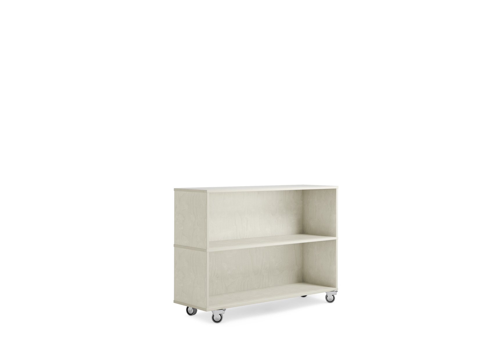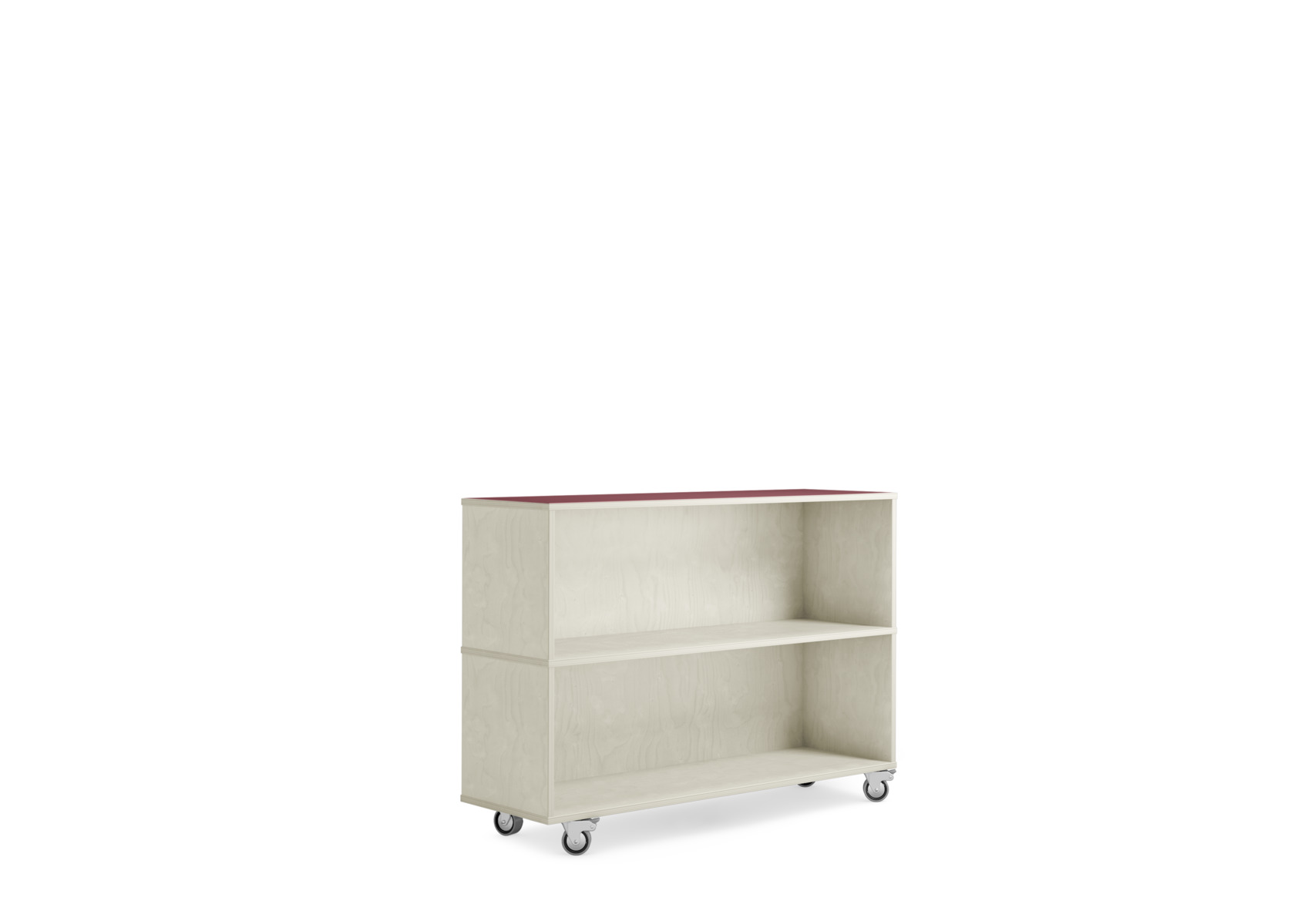 Tillverkas i björkkryssfaner av högsta kvalitet. Välj färg för högtryckslaminat på toppen. Levereras med 2 fasta hjul för ena kortsidan och 2 rörliga men låsbara hjul för den andra. Förborrade hål för enkel montering av hjul. Det går att minska tipprisken genom att rikta hjulen framåt respektive bakåt samt låsa hjulen i detta läge. Om hyllan ska användas som rumsavdelare eller fristående, rekommenderar vi användning av stödben. För mobila hyllor med en höjd över 80 cm rekommenderas att dessa placeras mot vägg eller dylikt. Förvaringslådor finns som tillval, både i björkkryssfaner eller flätade korgar. Mått:119x38x87 cm. Monterad. Svanenmärkt, licensnummer 5031 0099.