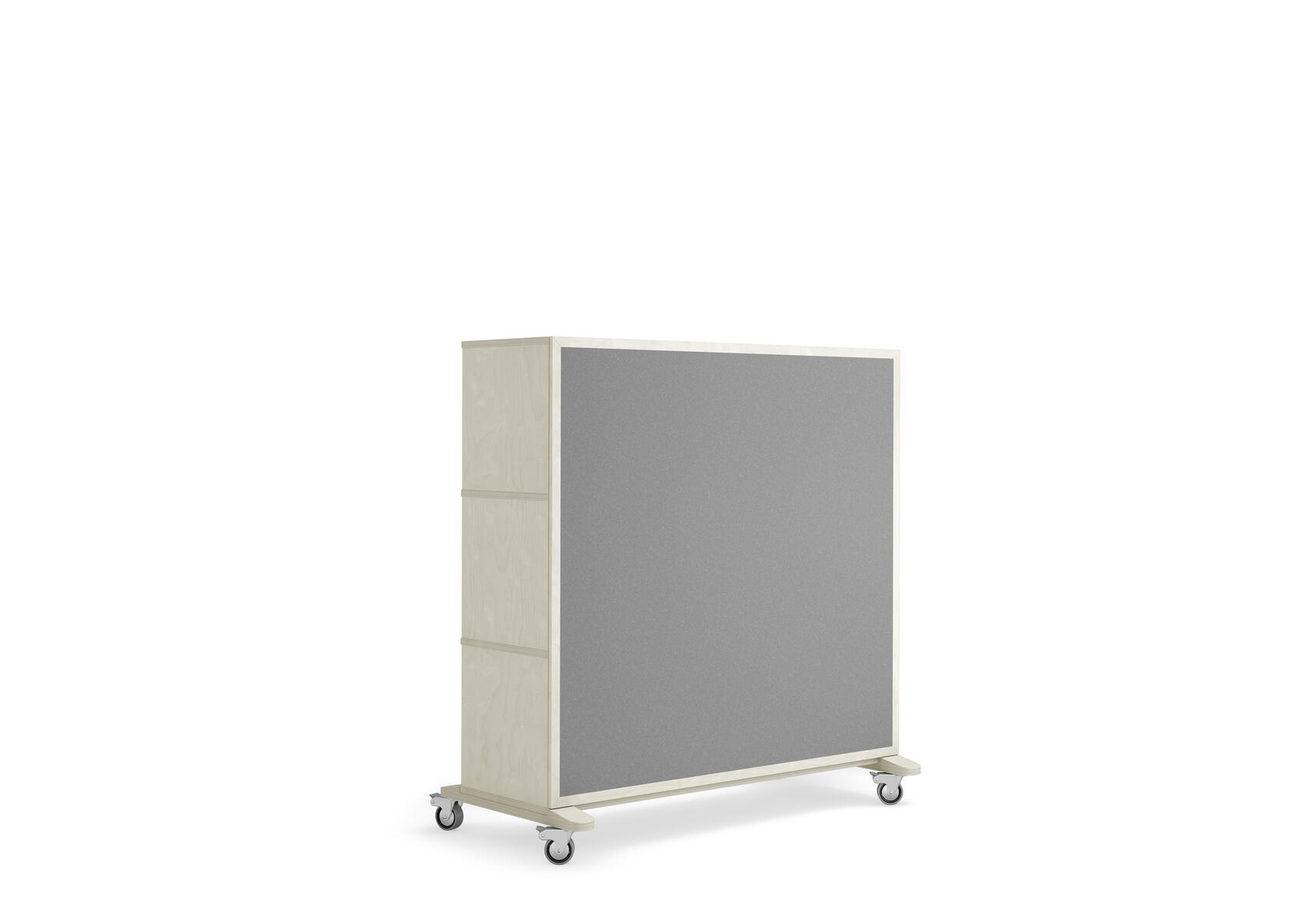 Rekommenderas att köpa till förvaring som är över 80 cm hög för att eliminera tipprisken. Låsbara hjul. Tillverkas i björkkryssfaner av högsta kvalitet. Om hyllan ska användas som rumsavdelare eller fristående, rekommenderar vi användning av stödben. Svanenmärkt, licensnummer 5031 0099.