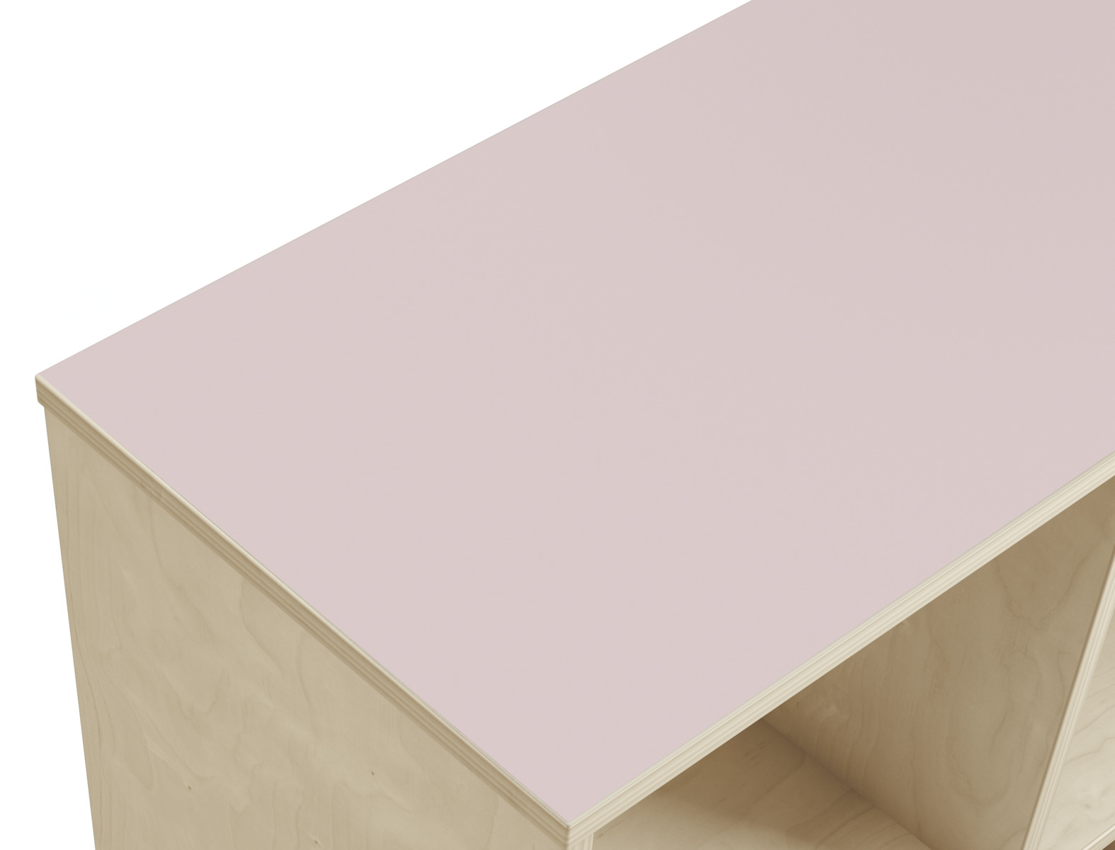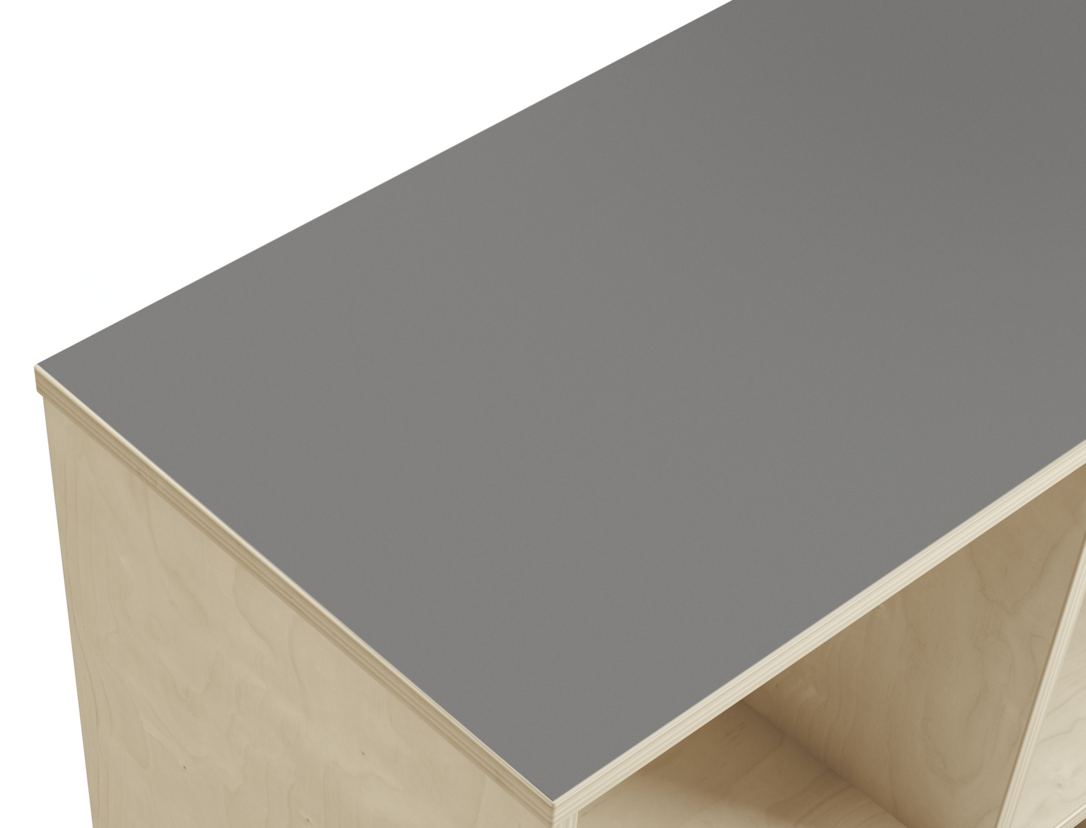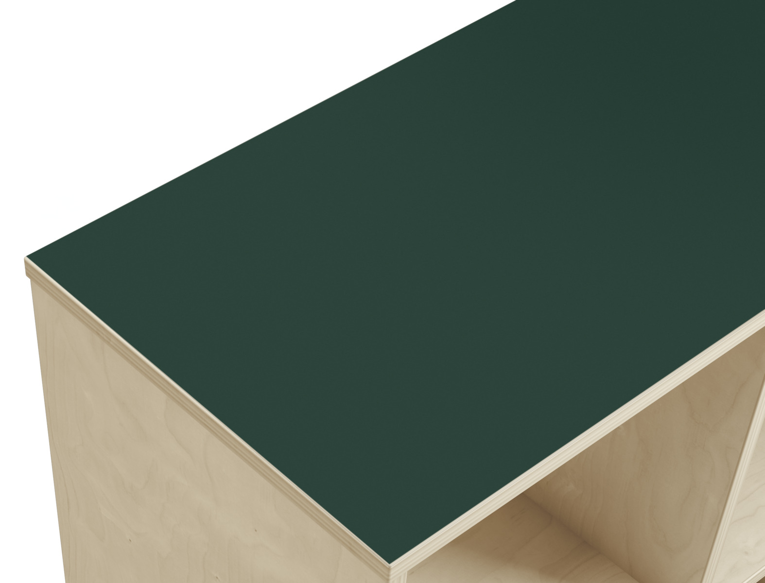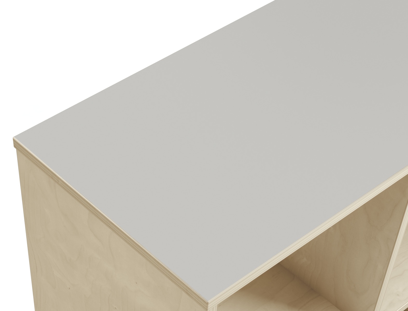 Förvaring med spegelrygg. Tillverkas i björkkryssfaner av högsta kvalitet. 2 fasta hjul på ena kortsidan och 2 rörliga med låsbara hjul på den andra. Förborrade hål för enkel montering av hjul. Mobila enheter ger en ökad flexibilitet och möjlighet att enkelt förändra rummets möblering. Undvik att placera tunga föremål högt upp i hyllan. Minska tipprisk genom att rikta hjulen framåt respektive bakåt samt lås hjulen. Val av färg är högtryckslaminat på förvaringens topp. Vid val av vitpigmenterad är förvaringen helt i plywood. Spegel av akrylplast.