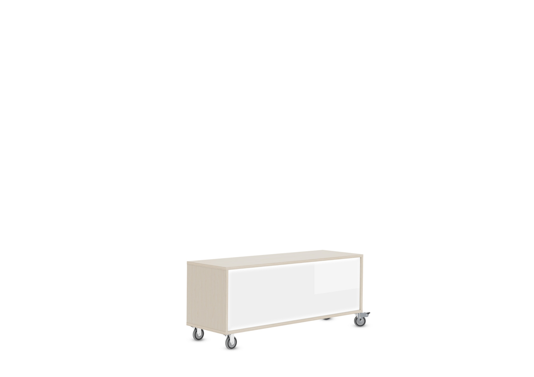 Förvaring med rygg i magnetisk whiteboard. Tillverkas i björkkryssfaner av högsta kvalitet. 2 fasta hjul på ena kortsidan och 2 rörliga med låsbara hjul på den andra. Förborrade hål för enkel montering av hjul. Mobila enheter ger en ökad flexibilitet och möjlighet att enkelt förändra rummets möblering. Undvik att placera tunga föremål högt upp i hyllan. Minska tipprisk genom att rikta hjulen framåt respektive bakåt samt lås hjulen. Val av färg är högtryckslaminat på förvaringens topp. Vid val av vitpigmenterad är förvaringen helt i plywood.