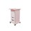 Vit stomme med val av färg på front och toppskiva. 2 fasta hjul och 2 roterbara hjul, lås på alla fyra hjulen. Höjd hjul 12 cm inklusive fäste. 2 nycklar vardera till låda, jalusi och dörr, totalt 6 nycklar. Handtag på låda, jalusi och dörr. Mått mellan låda och toppskiva: 18 cm. Toppskivans mått: 85x50 cm, tjocklek 25 mm. Lådor med stopp i framkant, ej soft close. Innermått översta lådan: B34xD34,5xH4 cm. Övriga lådor samma mått, men H7 cm. Spånskiva med melamin, tjocklek 18 mm. Front och toppskiva i högtryckslaminat.