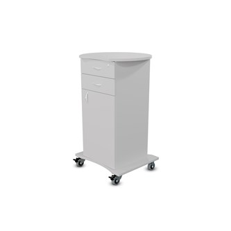 Pulpet med öppet fack, dörr med knopp och lås samt två lådor med handhål. Två nycklar ingår. Fyra hjul varav två låsbara, kräver enkel montering. Gjord i 16 mm björkplywood. Färger med "HT" är med högtryckslaminat. Björk och vitpigmenterad är helt i 18 mm plywood. Stommens mått: B45xD46xH100 cm. Mått totalt: B60xD61xH107 cm.