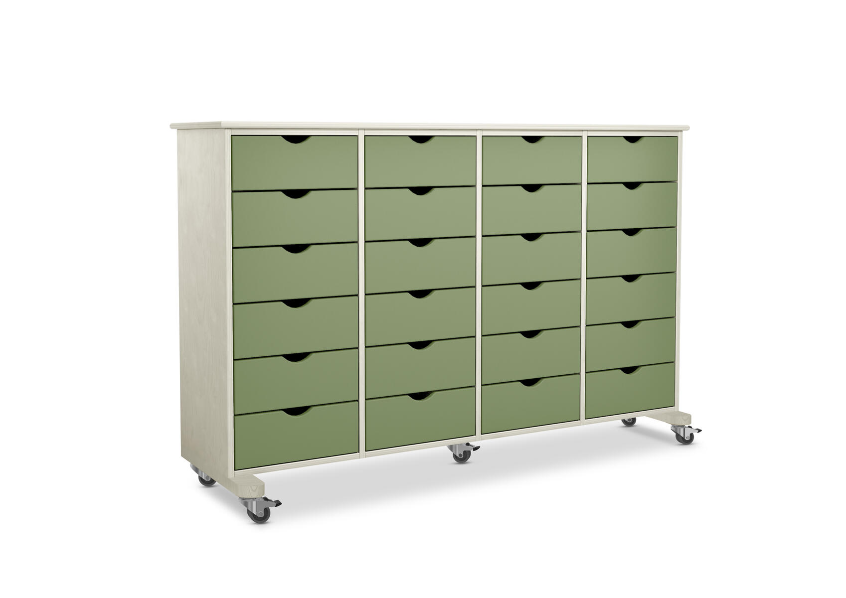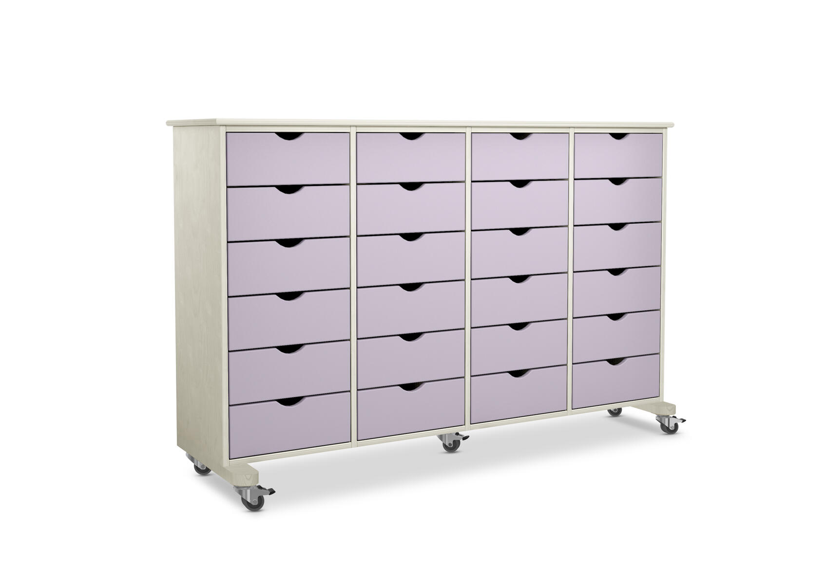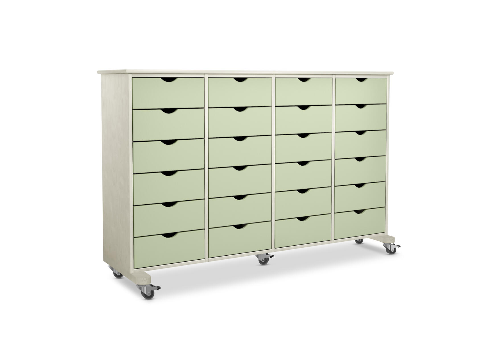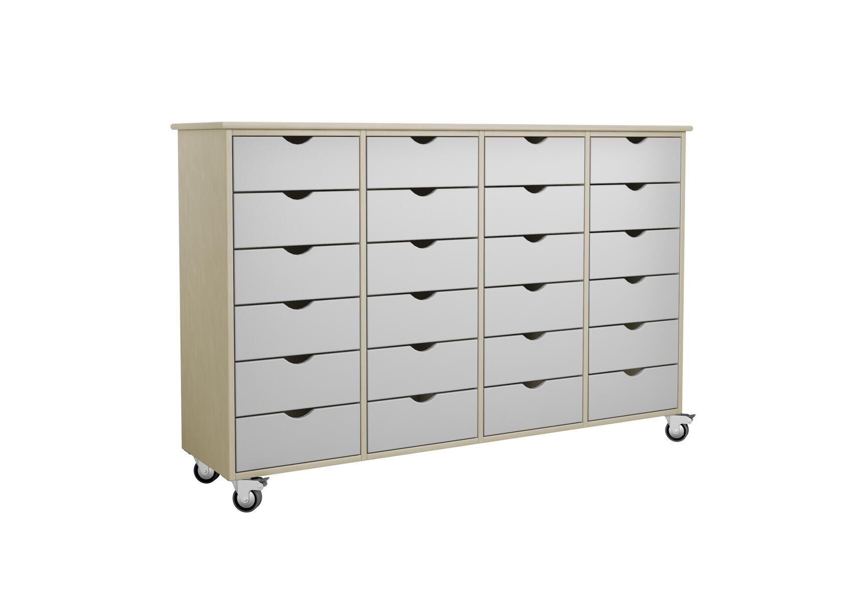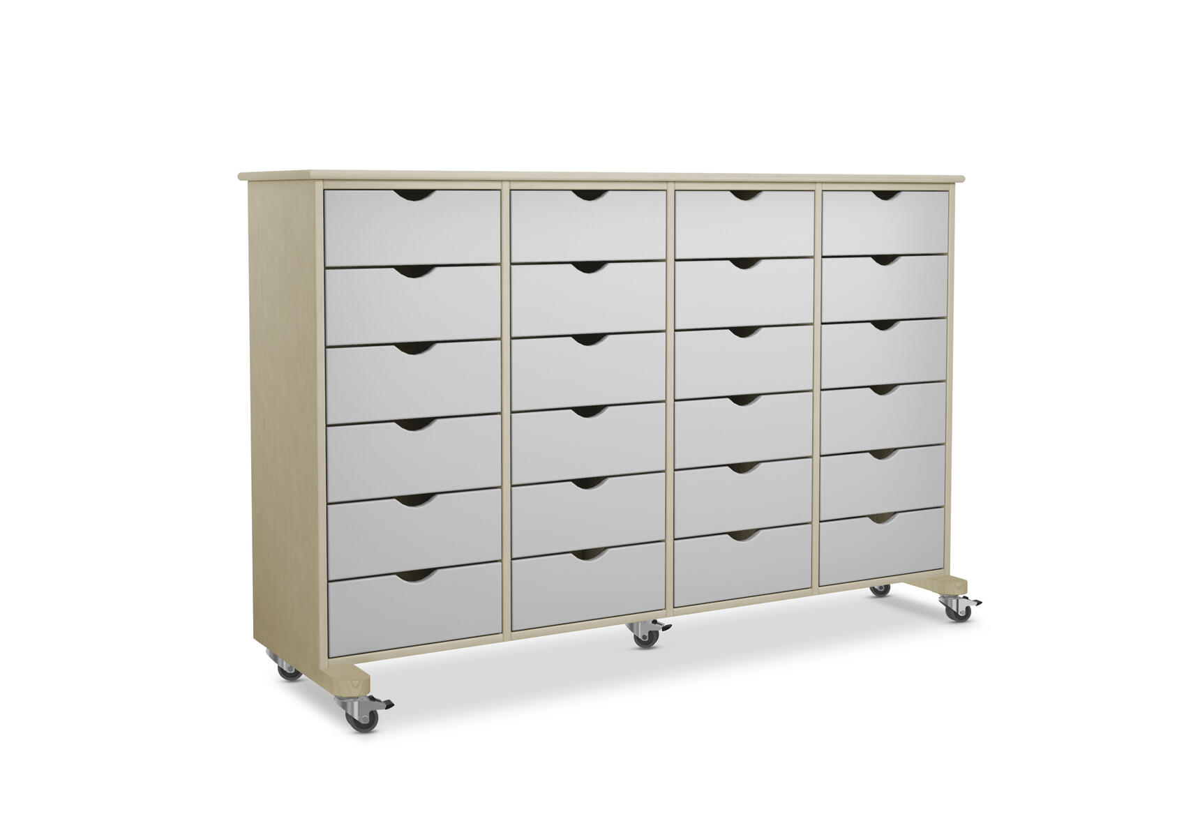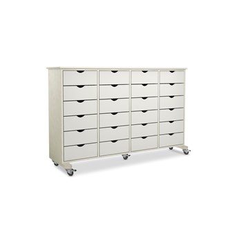 Lådfack Rabo 24 stora lådor med hjul och stödben vitpig