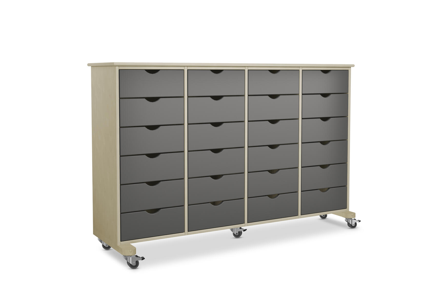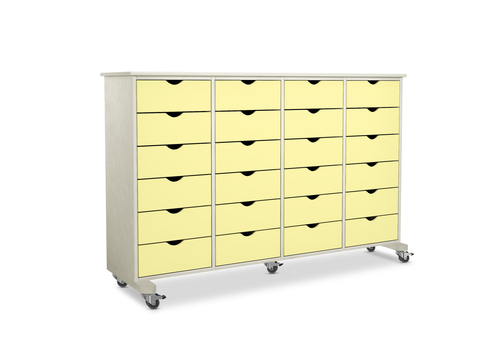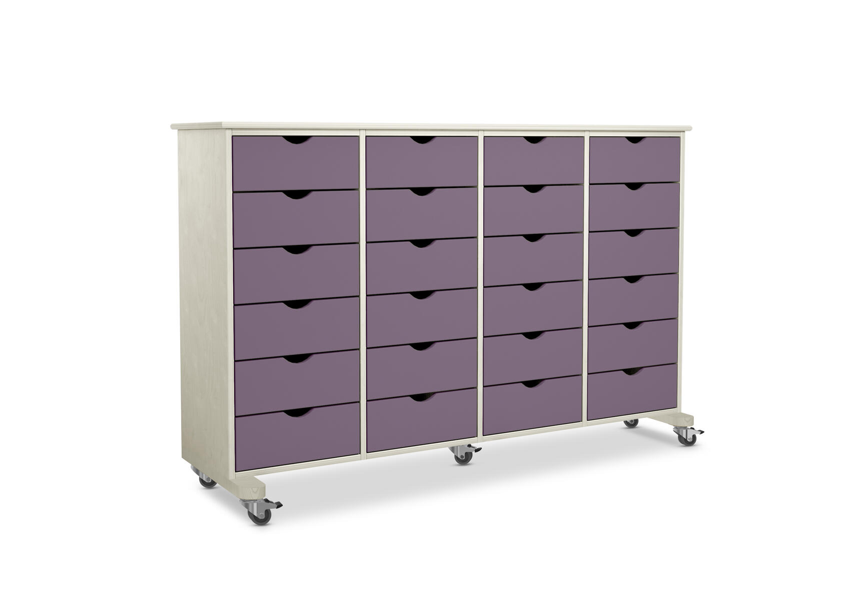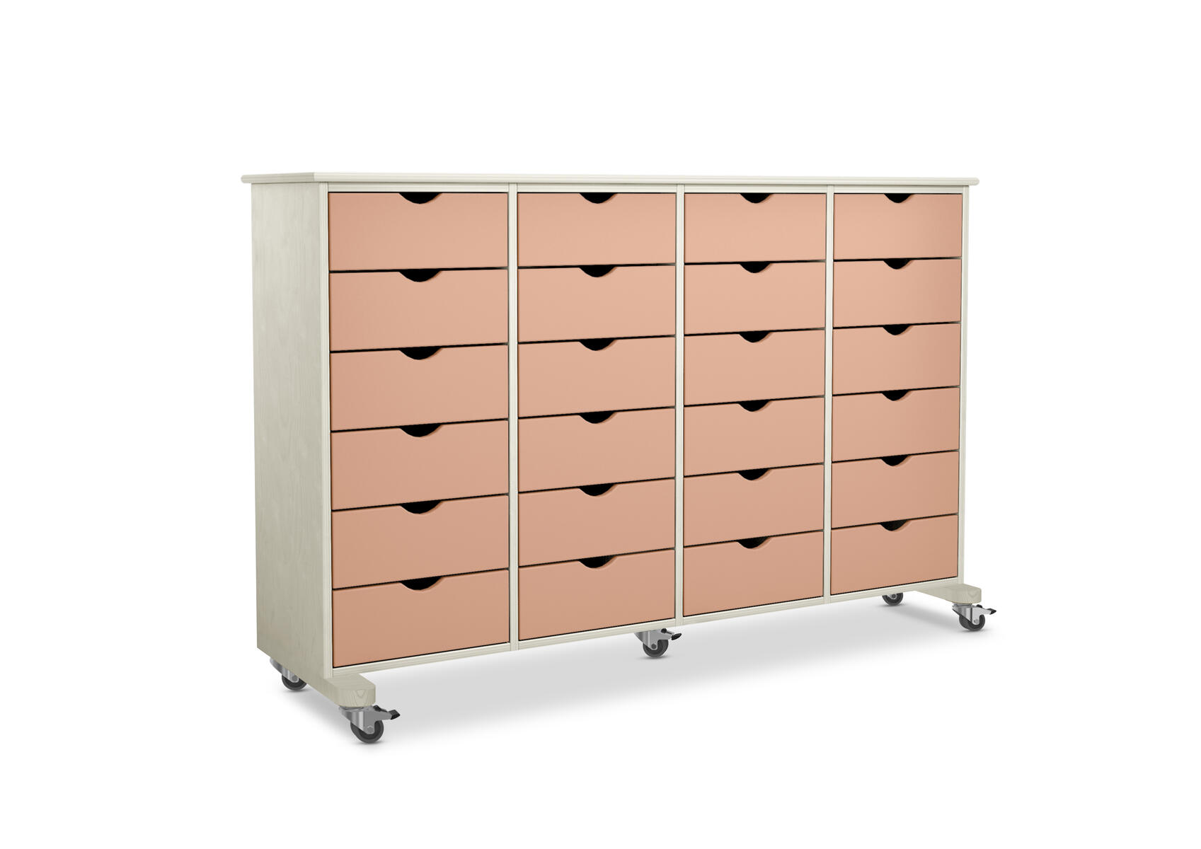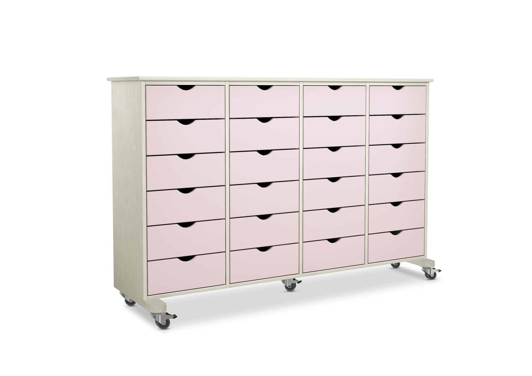 Lådfack Rabo 24 stora lådor med hjul och stödben vitpig