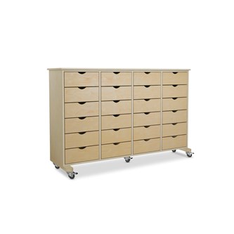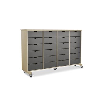Passar utmärkt som rumsavdelare. Lådor på rullexpansion. Levereras med 5 hjul varav 4 på stödbenen. Mått: 152x37x100 cm. Invändiga mått lådor: B21xD32 cm. Stödben sticker ut 7 cm. Tillverkas i 18 mm klarlackerad björkkryssfaner av högsta kvalitet. Mobila enheter ger en ökad flexibilitet och möjlighet att förändra rummets möblering. Vi vill dock göra er uppmärksamma på att hyllor och hurtsar på hjul innebär en ökad tipprisk, särskilt då enheten placeras fritt på golvet. Undvik att placera tunga föremål högt upp på hyllan. Låt inte barnen själva förflytta hyllan.