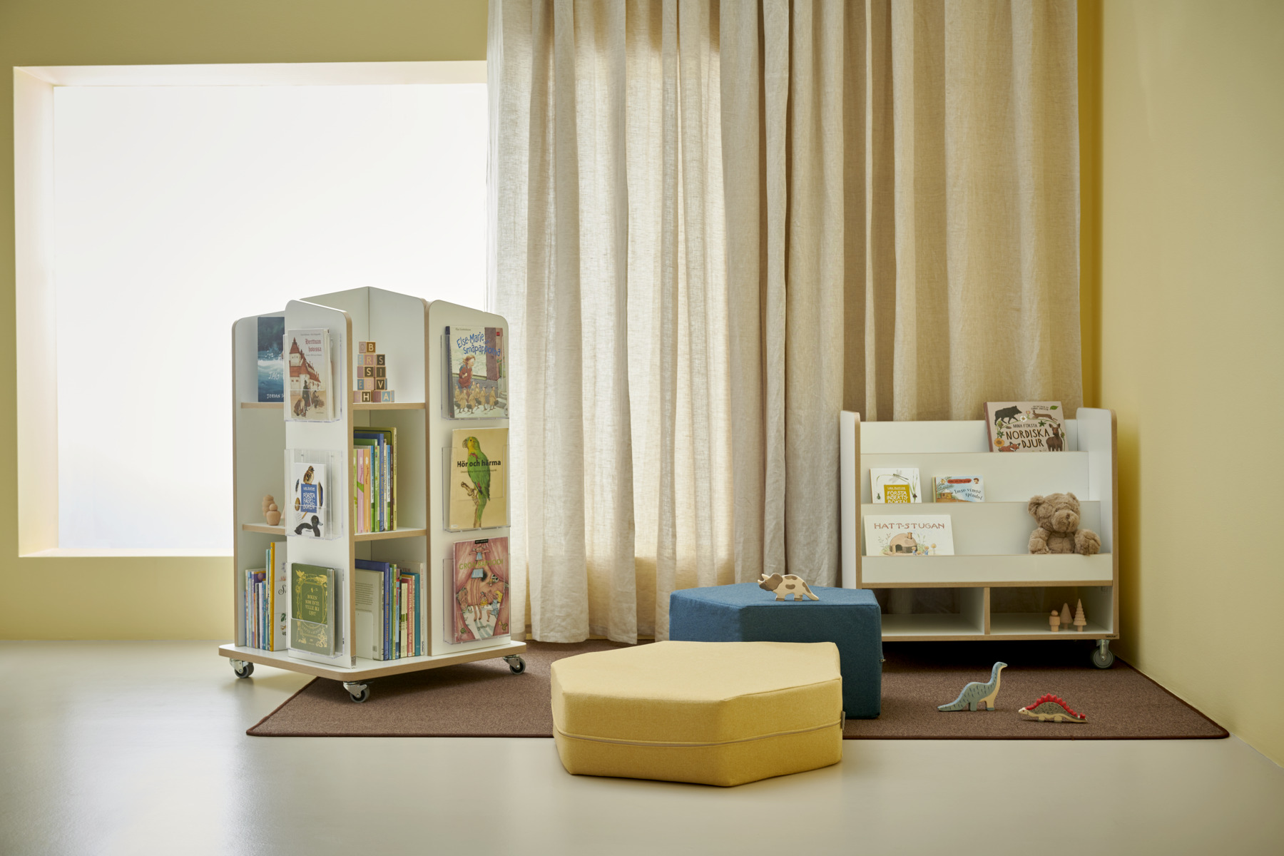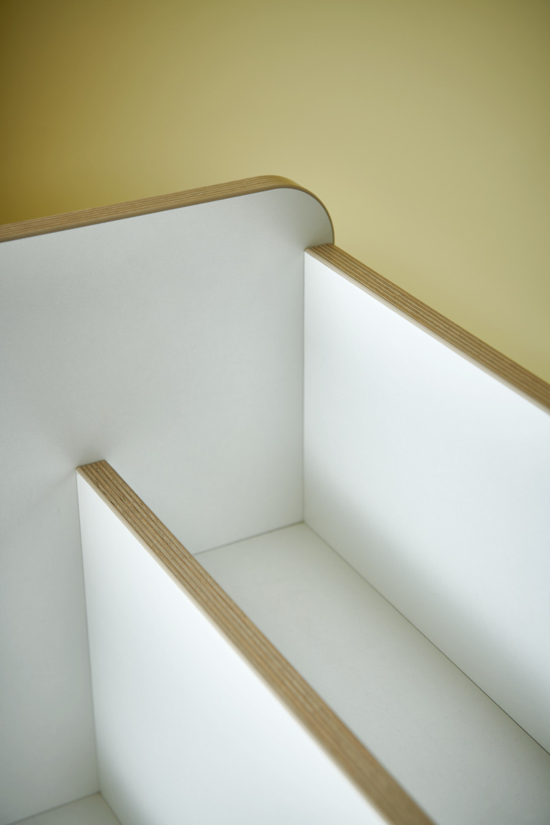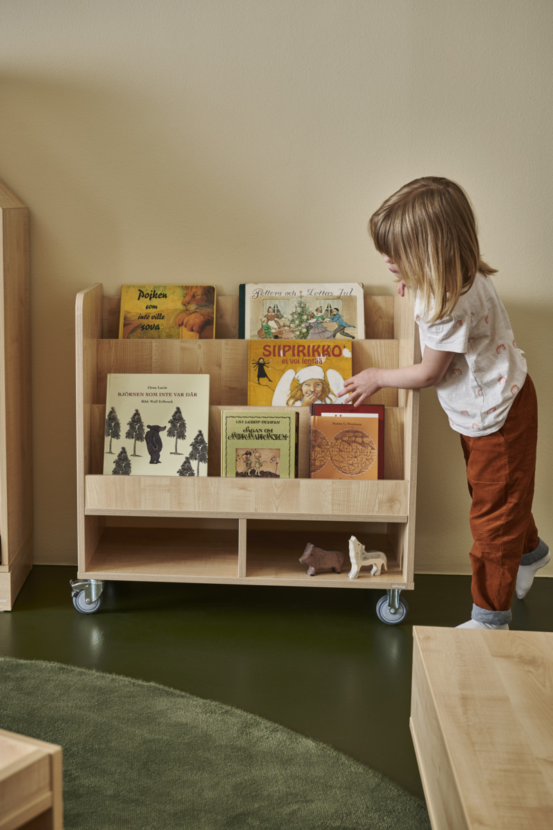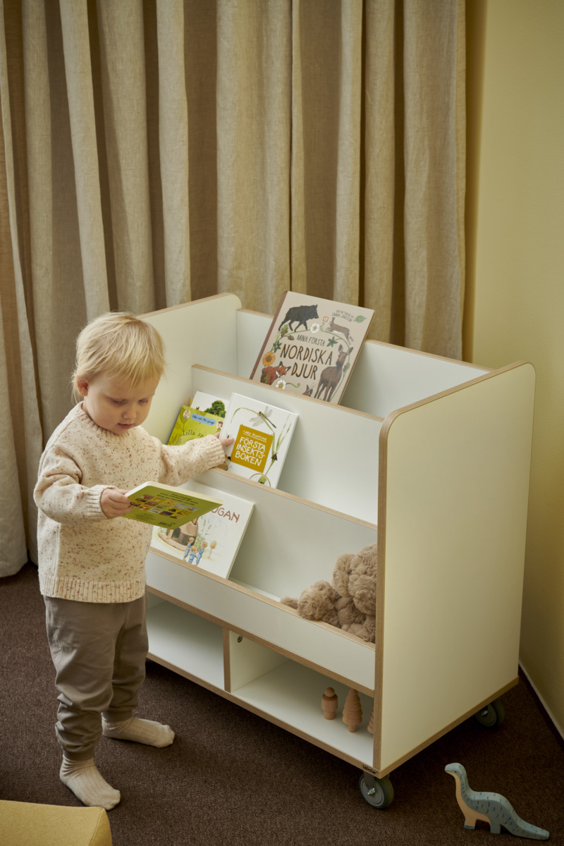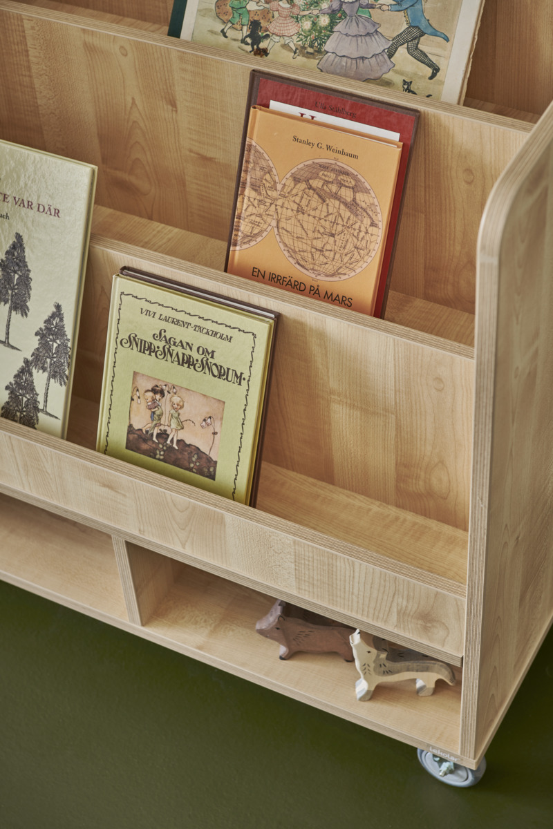 Boklådan passar både fristående och ovanpå en Fixa 3:1. Handtag underlättar förflyttning. Boklådan kan förses med ben, plint, sockel eller hjul för Fixa. Björk och vitpigmenterad helt i plywood; färgade med laminat. Svanenmärkt, licensnummer 5031 0099.