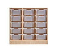 Komplett förvaringshylla med backar från Gratnell. Vid val av hjul: 4 hjul varav 2 är fasta, vilket gör förvaringen stabil vid förflyttning. De rörliga har lås. Material 18 mm spånskiva med laminat med kantband i ABS. Stomme med ben och sockel ska fästas i vägg med medföljande väggbeslag. Skruv för detta ingår inte. Skena med stopp till back. Mått back: B31,2xD42,7xH15 cm. Välj färg på back.