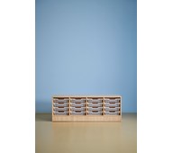 Svea elevförvaring på hjul, 18 små lådor. Levereras färdigmonterad. 5 hjul varav tre är rörliga och med lås på ena kortsidan. De andra två är fasta, vilket gör förvaringen stabil vid förflyttning. Lådor har en smal öppning som agerar postfack och öppnare. Material 18 mm spånskiva med laminat. Kantband i ABS. Bottenplatta D44,5 cm. Lådmått: 117190: Mått front: B38,5xH övreoch mitt 11 cm, nedre 13 cm. Lådans innermått: B34xD33,5xH7 cm. 120057: Mått front: B38,5xH övre 18 cm och nedre 17 cm. Lådans innermått: B34xD33,5xH7 cm.