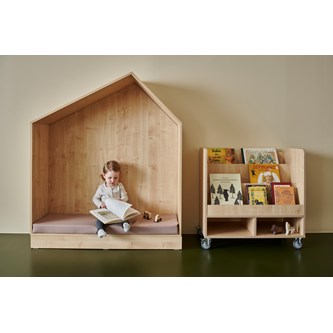 Svea hus är ett mysigt krypin med en slät bakvägg som även passar bra att projicera på. Vi rekommenderar att den fästs i vägg. 2 väggbeslag medföljer, dock inte skruvar. Tillverkad av 18 mm spånskiva med FSC-certifierad melamin. Mått: B120xD40xH140 (totalhöjd) cm. Höjd sidopanel 100 cm. Sockel bygger 10 cm, indrag 15 mm baktill.