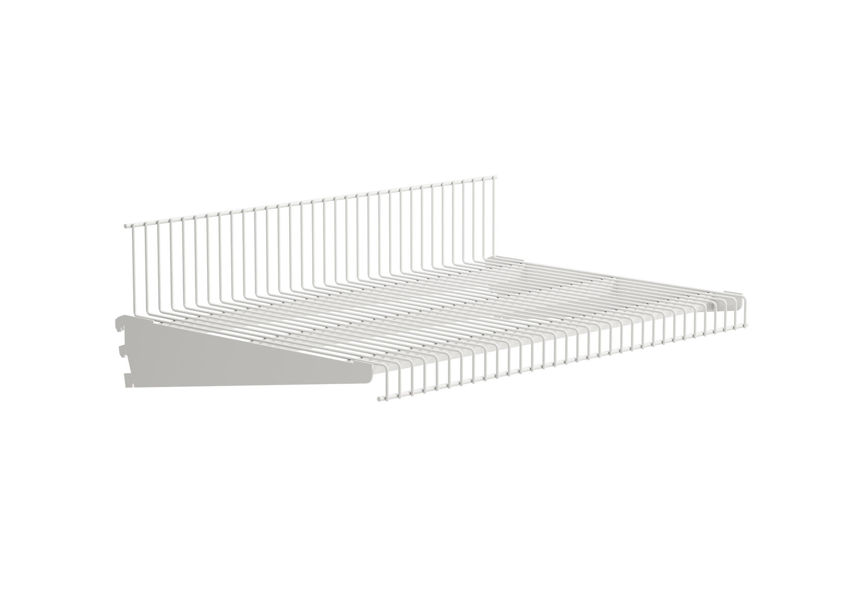 Använd till Wille skensystem. Passar till både vägghängda och fristående modeller. Enkel att justera i höjd. Det krävs montering av trådhyllplan och de inkluderade konsolerna. Kan användas rakt och i 23 graders vinkel. Vid vinkling använd den uppåtgående tråden som stopp. Vinklingen är 10 cm hög. Utmärkt som förvaring i alla utrymmen. Lätt att rengöra, torka med fuktig trasa.