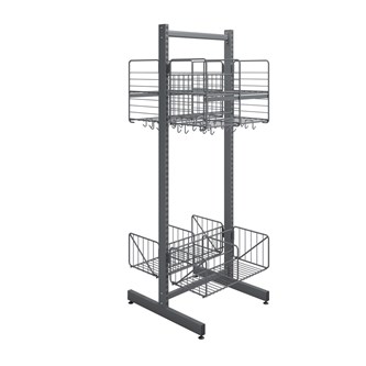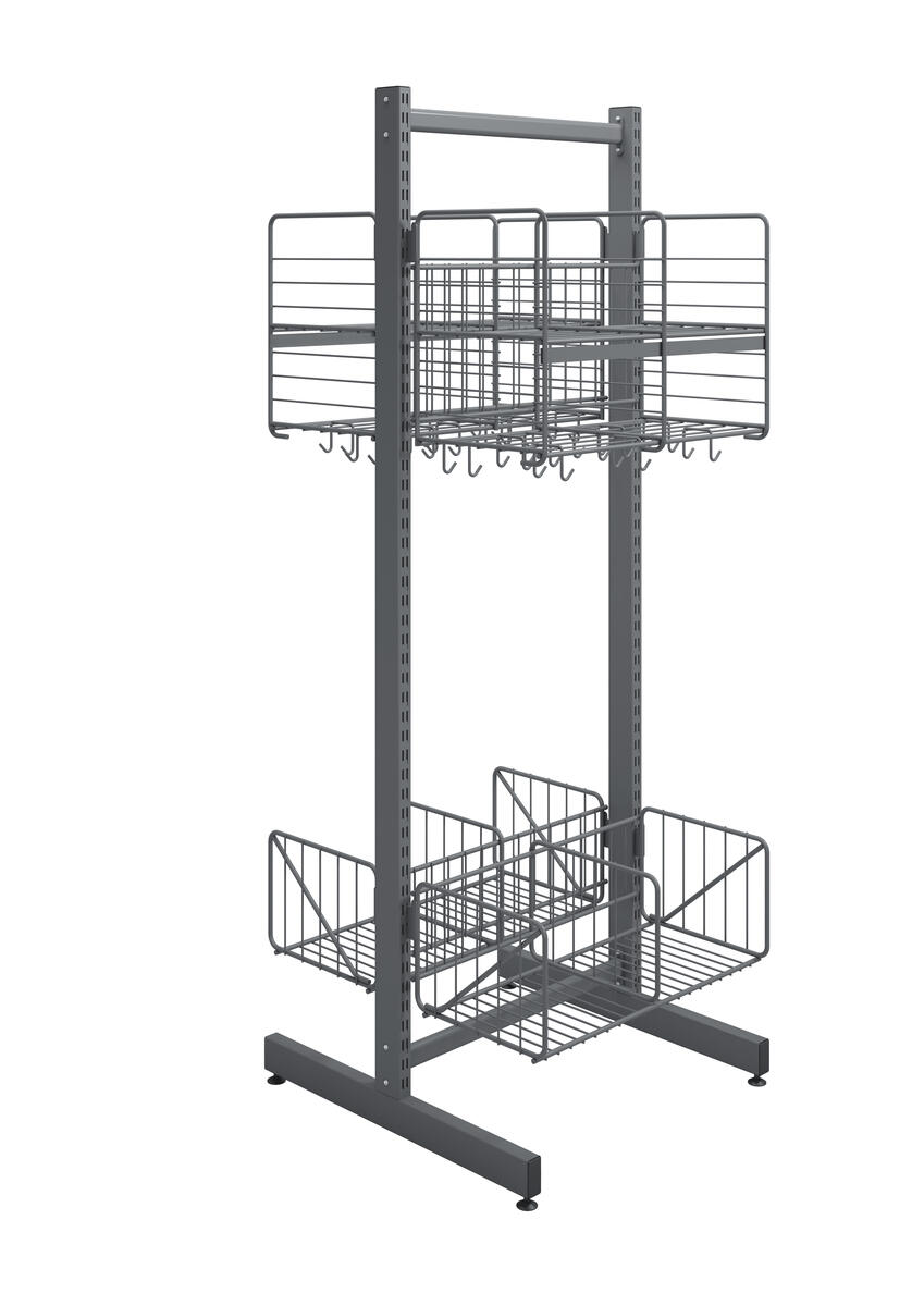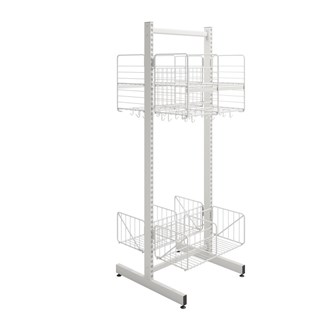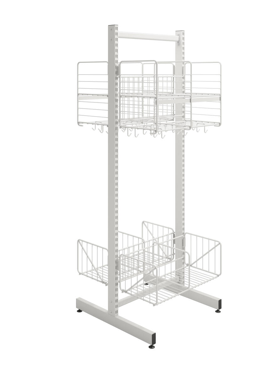 Använd till Wille skensystem. Passar till både vägghängda och fristående modeller. Enkel att justera i höjd. 3 dubbelkrokar i varje fack. Mått: B50xD32xH40 cm.