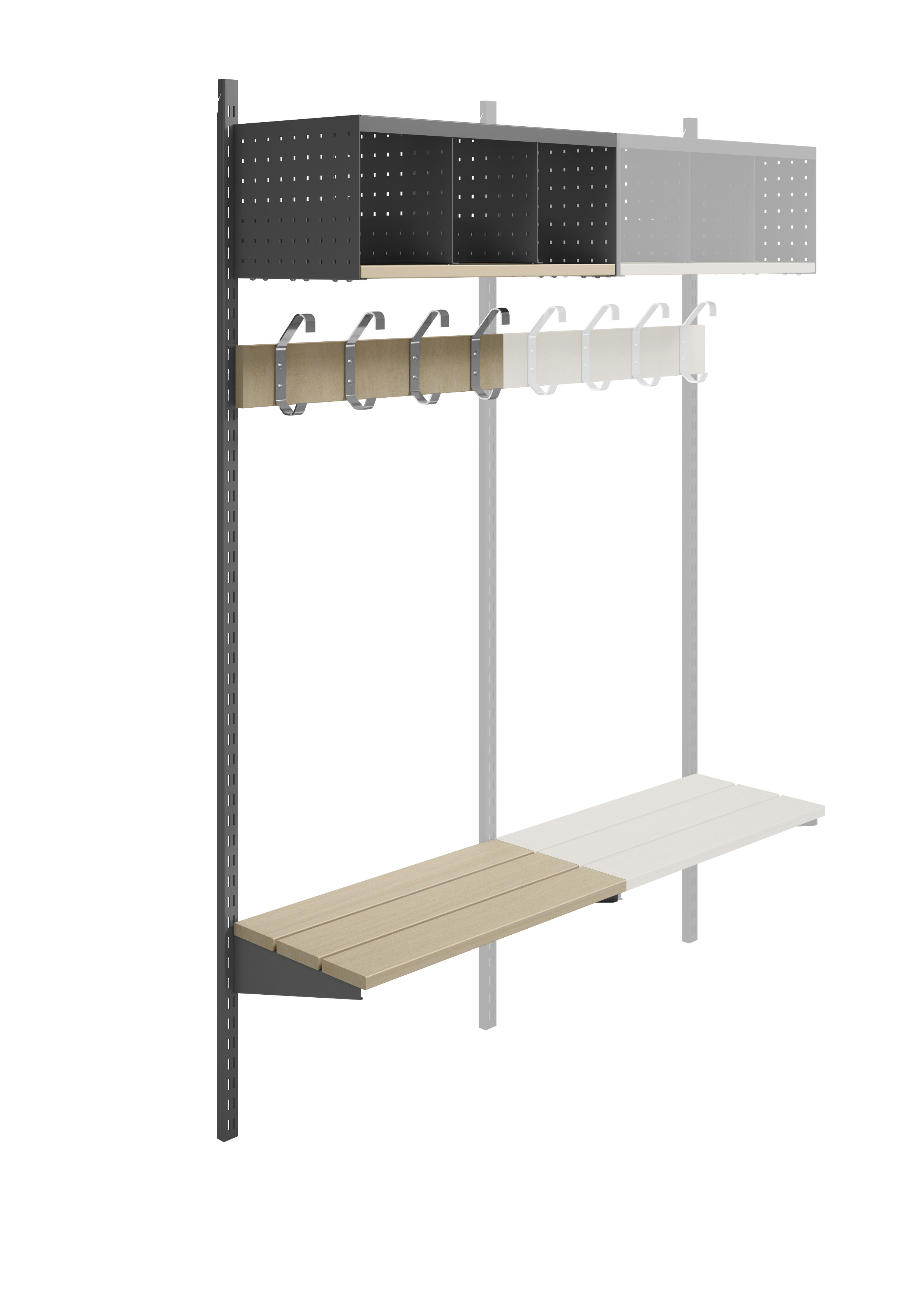 Wille påbyggnad 3-fack vägg med krok och sittbänk, 60 cm
