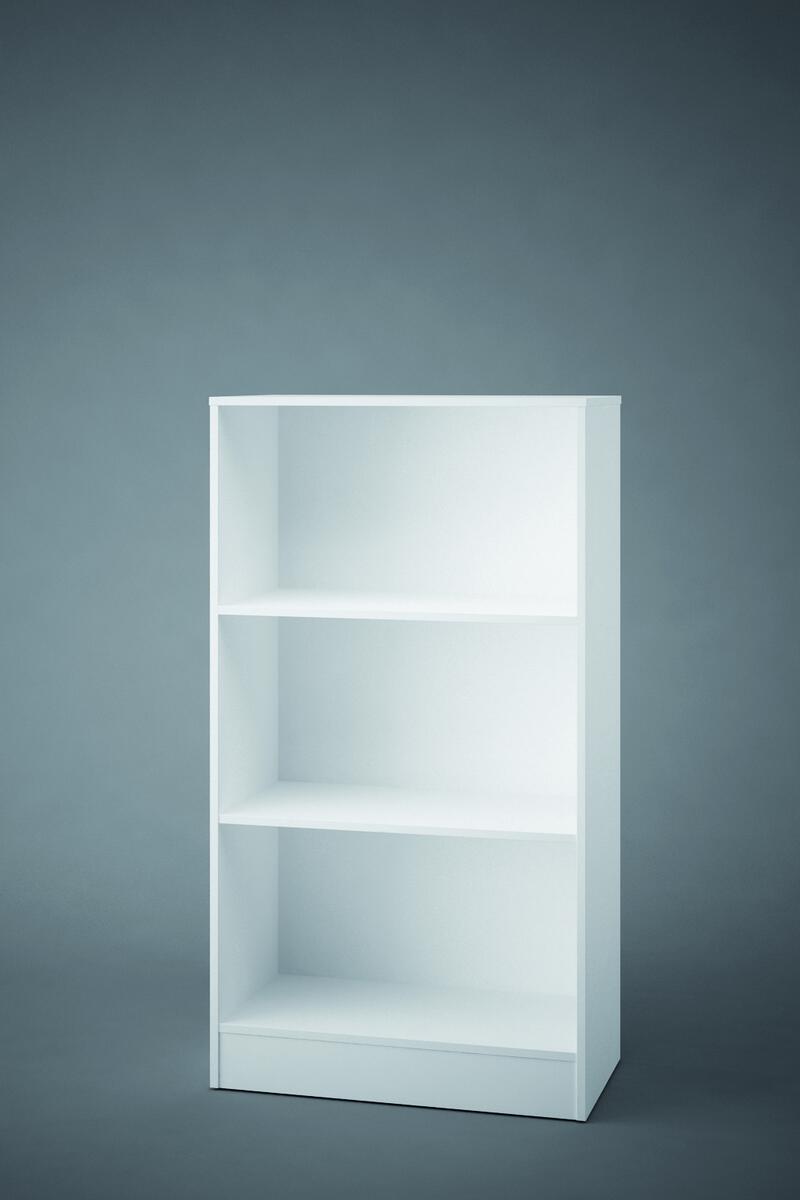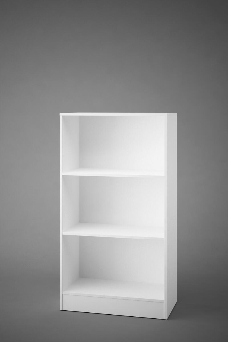 3 hyllor. Mått: B80xD42xH145 cm. Melamin.