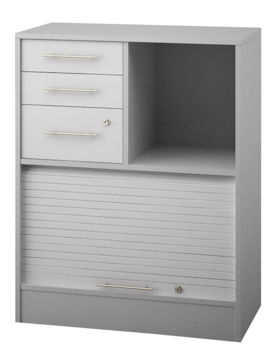 Skåp Ordna 101 grå med 1 jalusi, 3 lådor och 1 öppen hylla